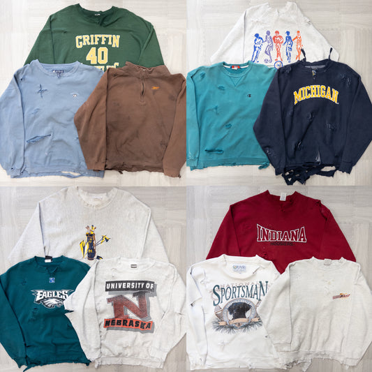 古着卸 現物まとめ売り 洗濯済み ボロリメイクスウェット 12枚セット(M-XXL) w1014001