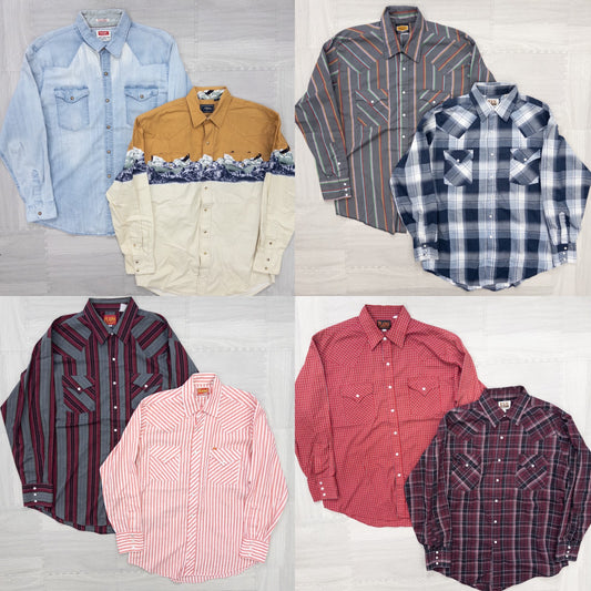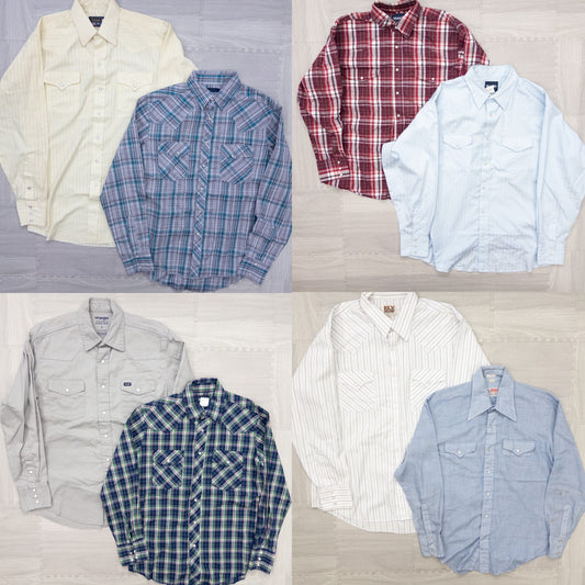 古着卸 現物まとめ売り 洗濯済み 長袖ウエスタンシャツ 8枚セット(M-XL) w908004