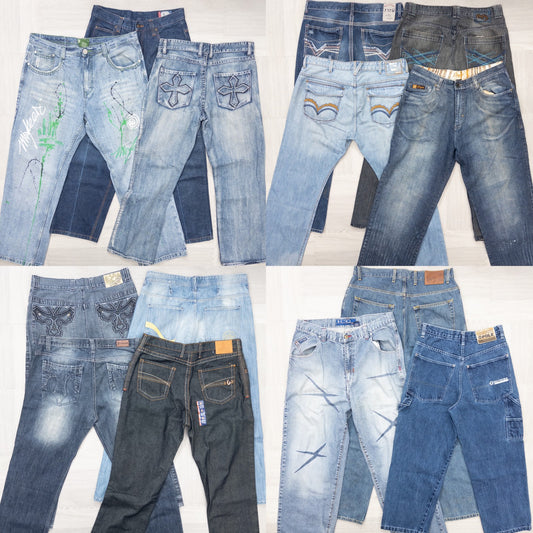 古着卸 現物まとめ売り 洗濯済み Y2Kデニムパンツ 14本セット(W38-W51) w908006