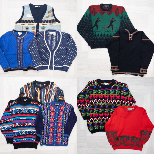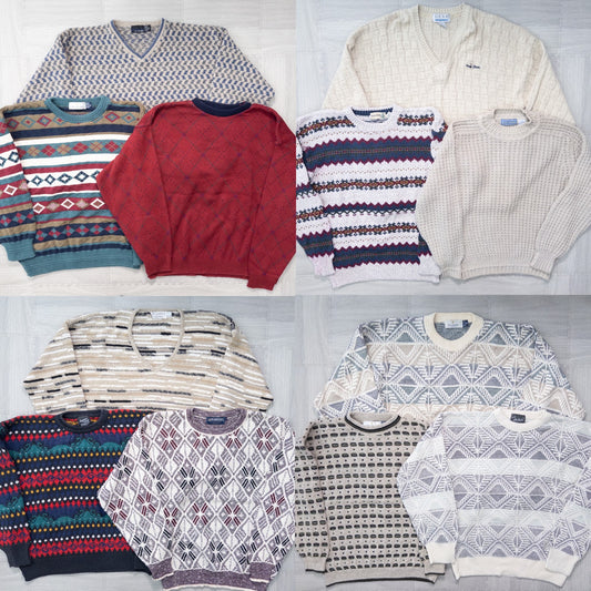 古着卸 現物まとめ売り 洗濯済み US コットン 柄ニット 10枚セット(M-XXL) w902004