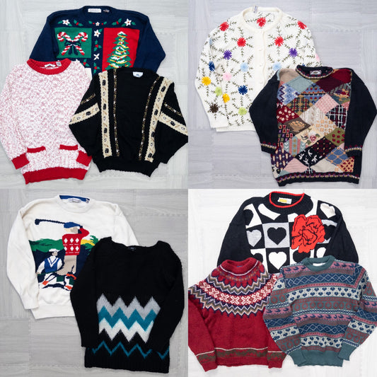 古着卸 現物まとめ売り 洗濯済み レトロデザイン レディースニット 10枚セット(S-XL) w914004