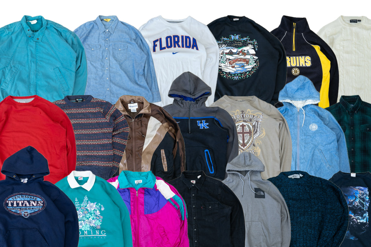 We have narrowed our lineup down to items that are easy to wear, such as no-brand outerwear and knitwear, and branded sweatshirts from brands like Nike, Adidas, and Champion.