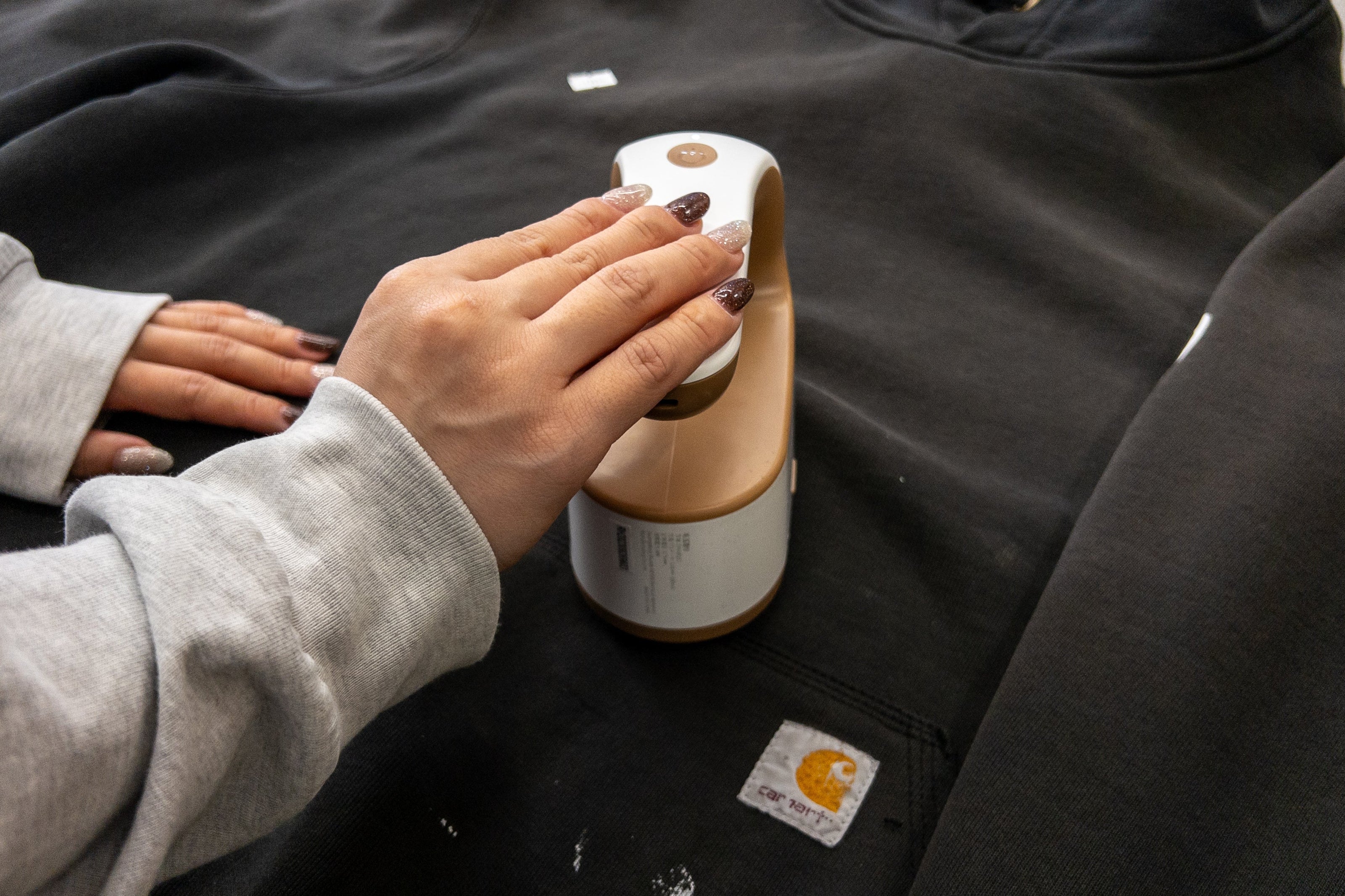 The staff handles hundreds of pieces of used clothing each day, and makes daily efforts to determine what is selling well and what condition the items are in.