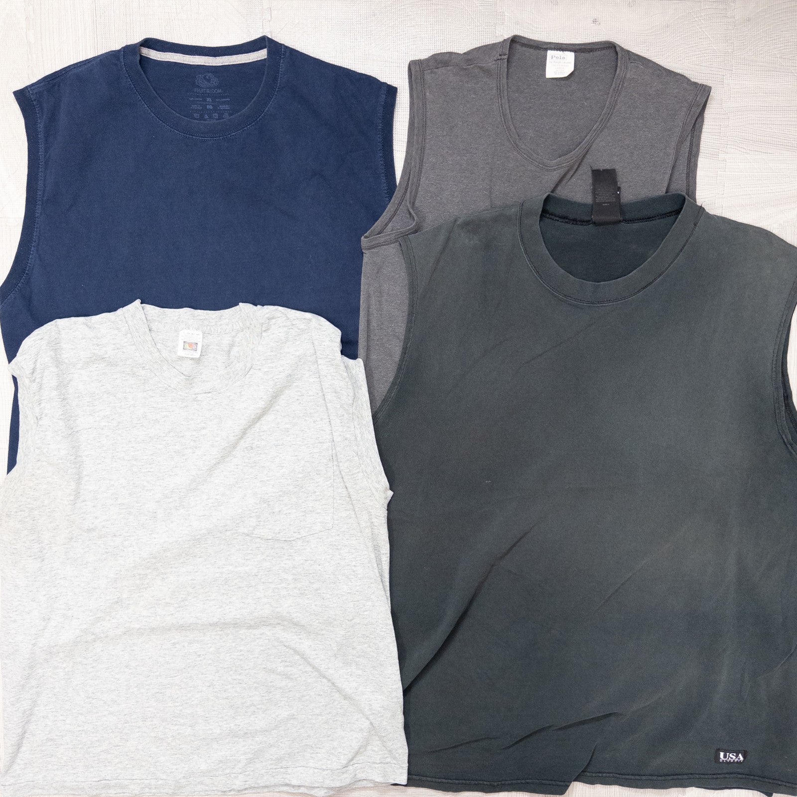 Wholesale Used Clothing, Bulk Sale, Washed Sleeveless Tops, 15-Piece Set (S-XXXL) w615005