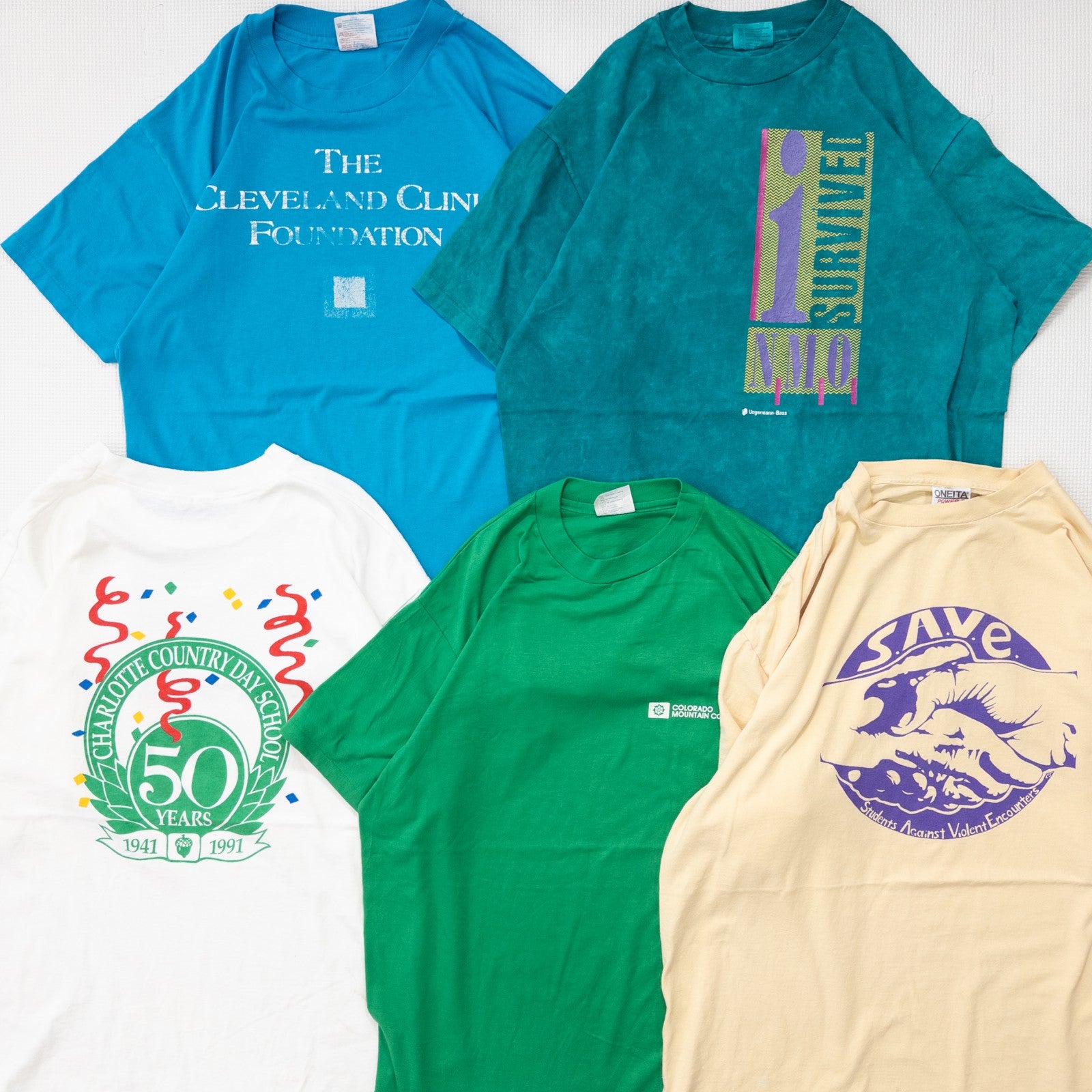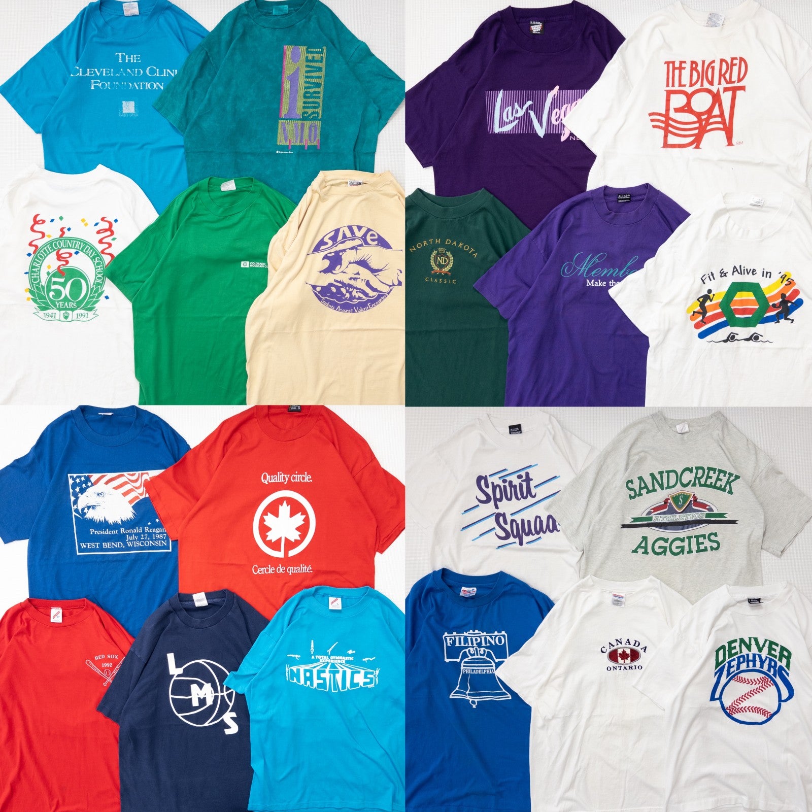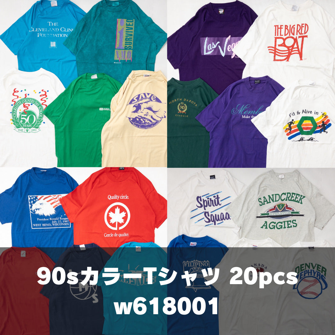 Used clothing wholesale, bulk sale, washed, 90s color short-sleeve T-shirts, set of 20 (M-XXL) w618001