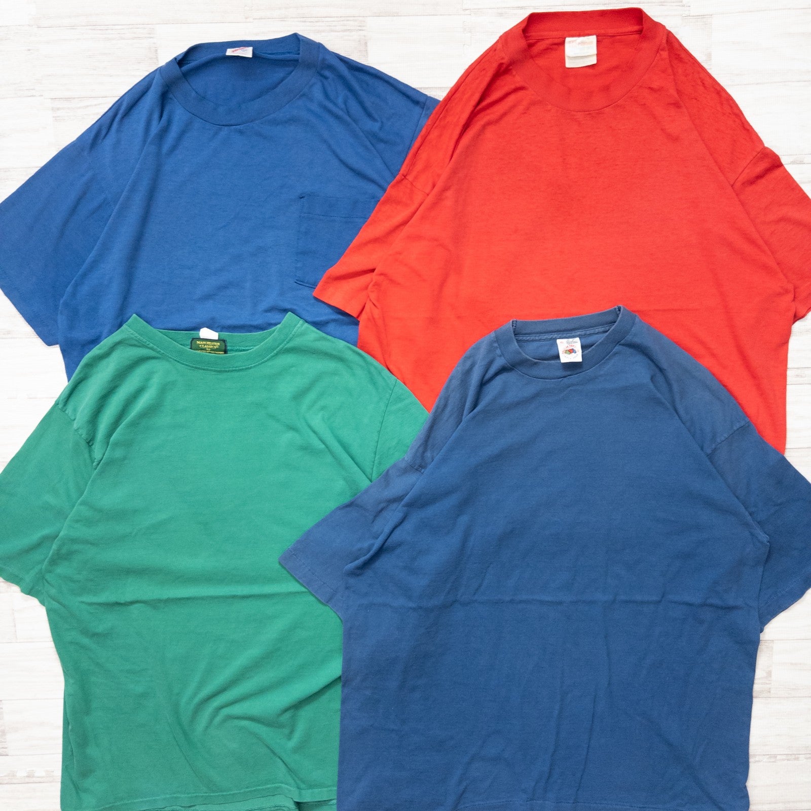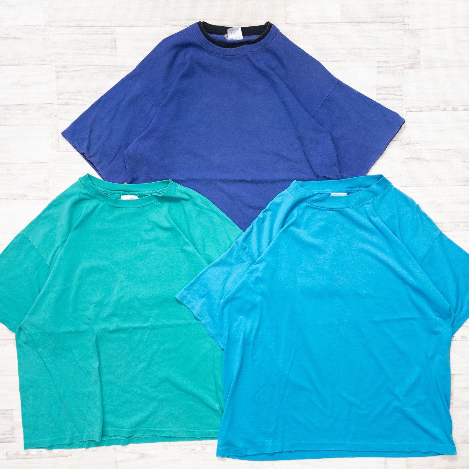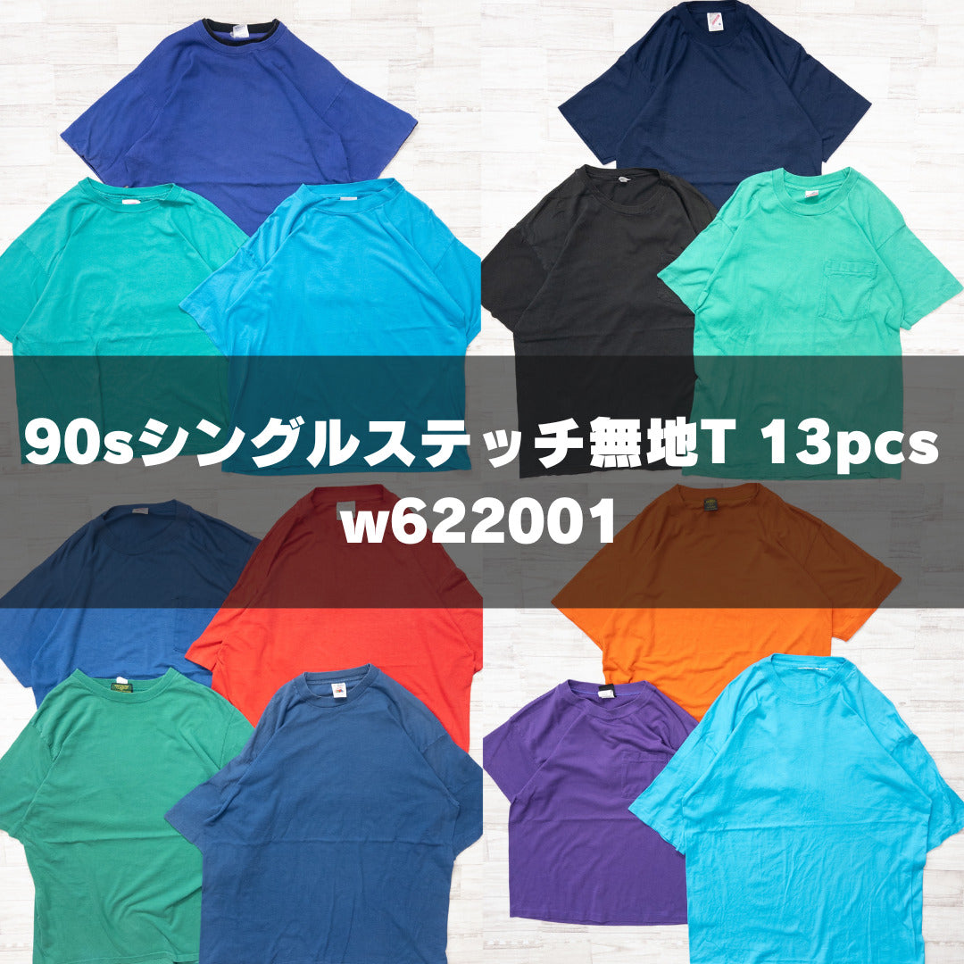 Used clothing wholesale bulk sale: 13-piece set of washed 90s single-stitch solid color short-sleeve T-shirts (M-XXL) w622001