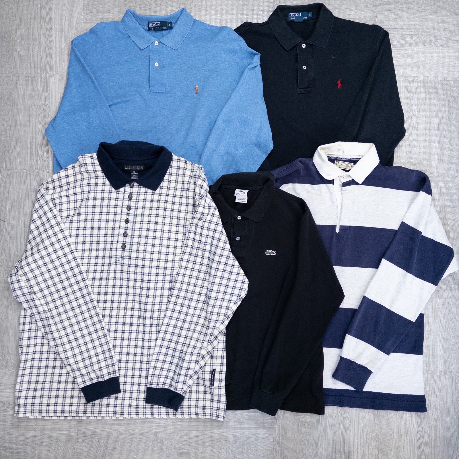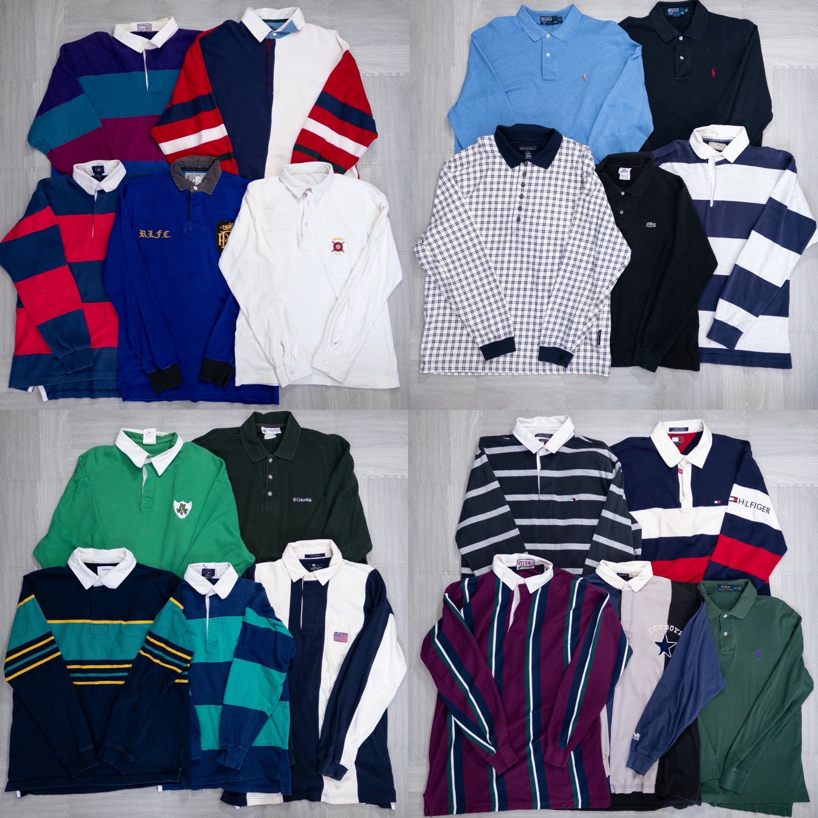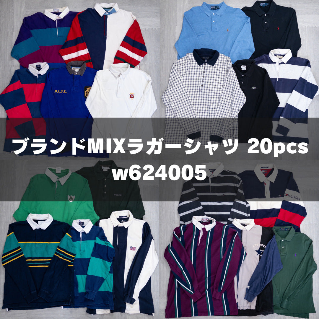 Used clothing wholesale, bulk sale, washed, mixed brand long-sleeve polo shirts, rugby shirts, set of 20 (S-XL) w624005