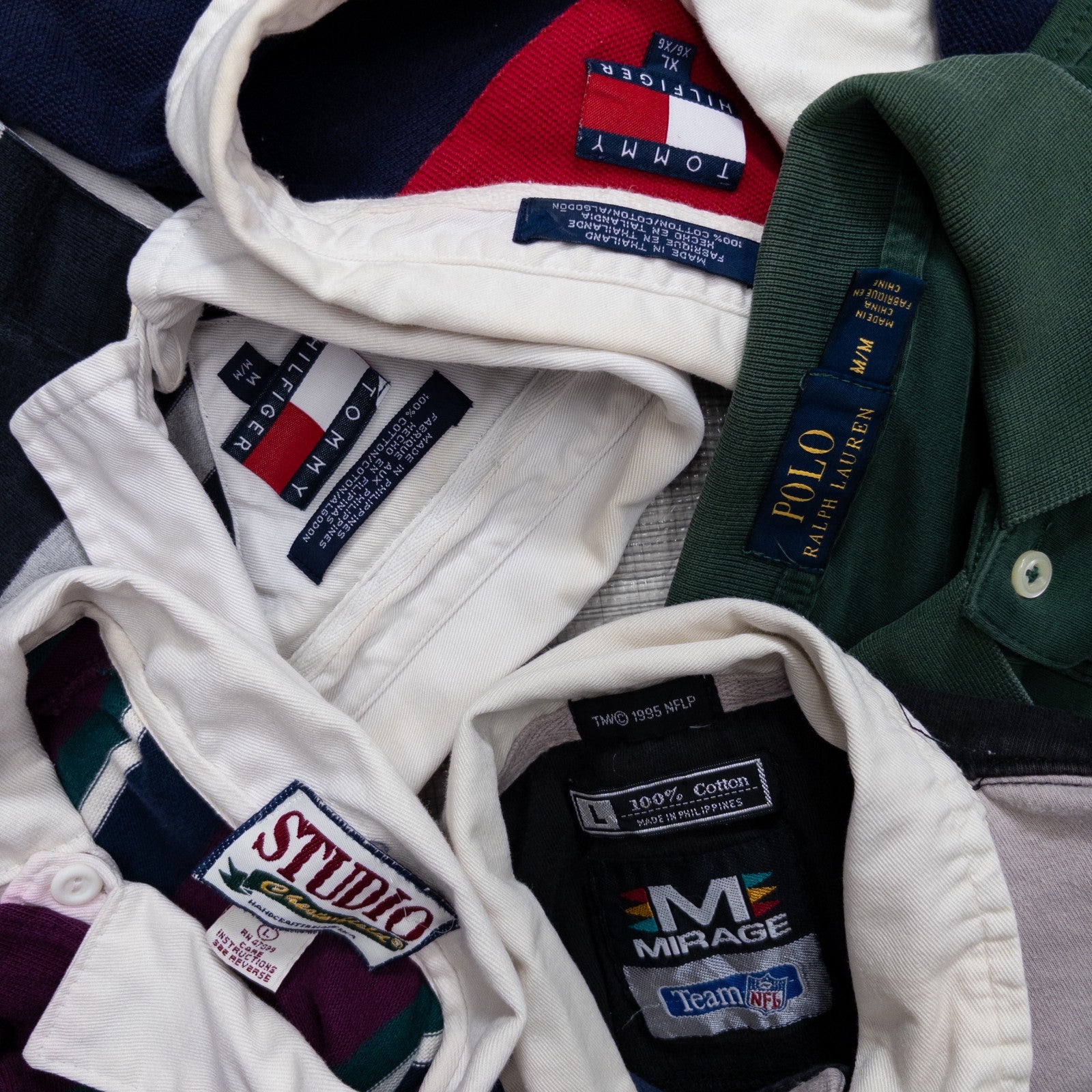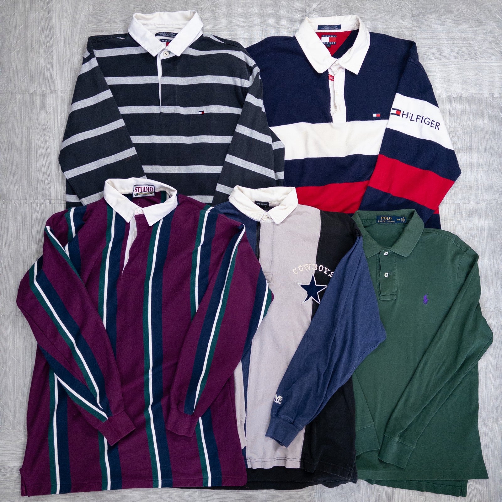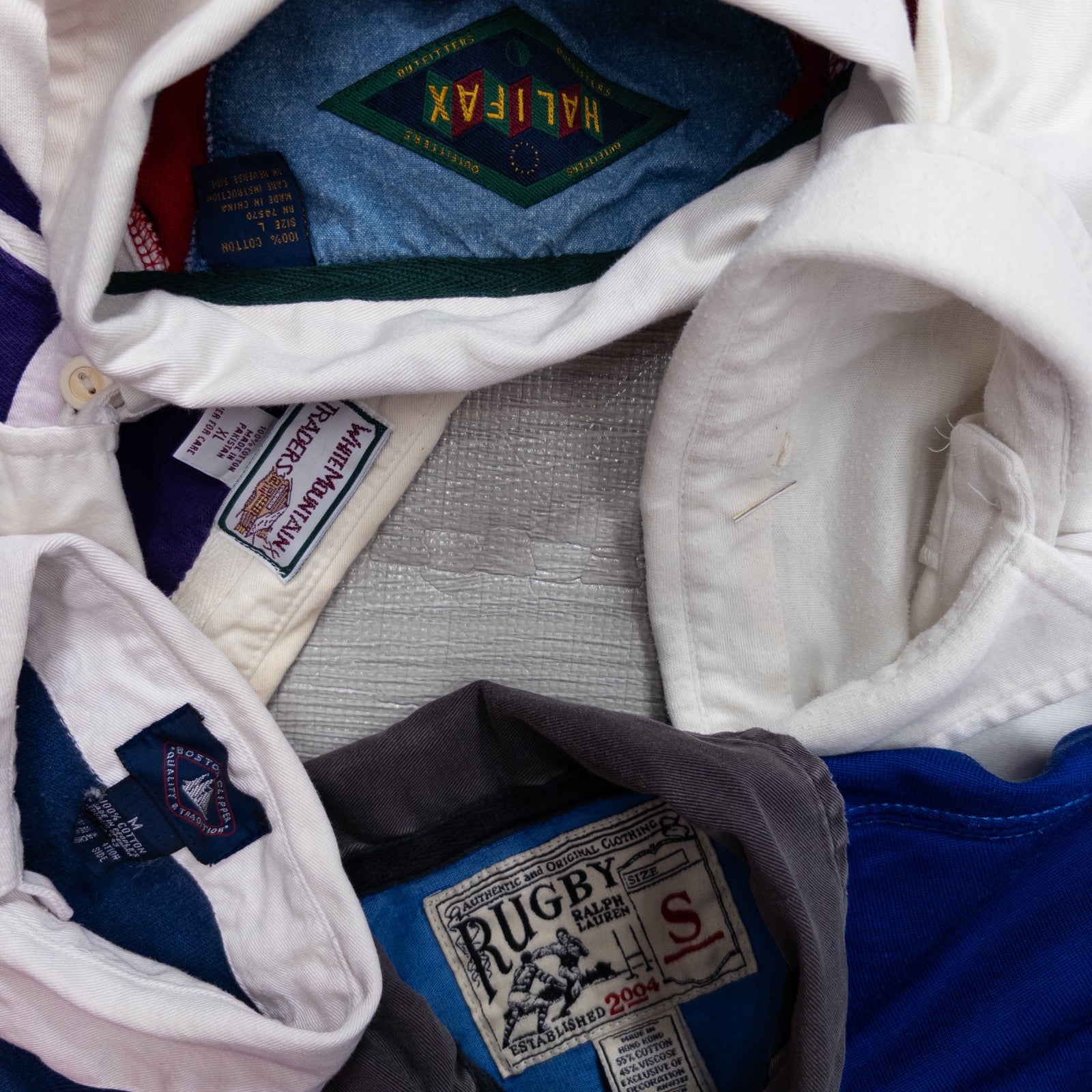 Used clothing wholesale, bulk sale, washed, mixed brand long-sleeve polo shirts, rugby shirts, set of 20 (S-XL) w624005