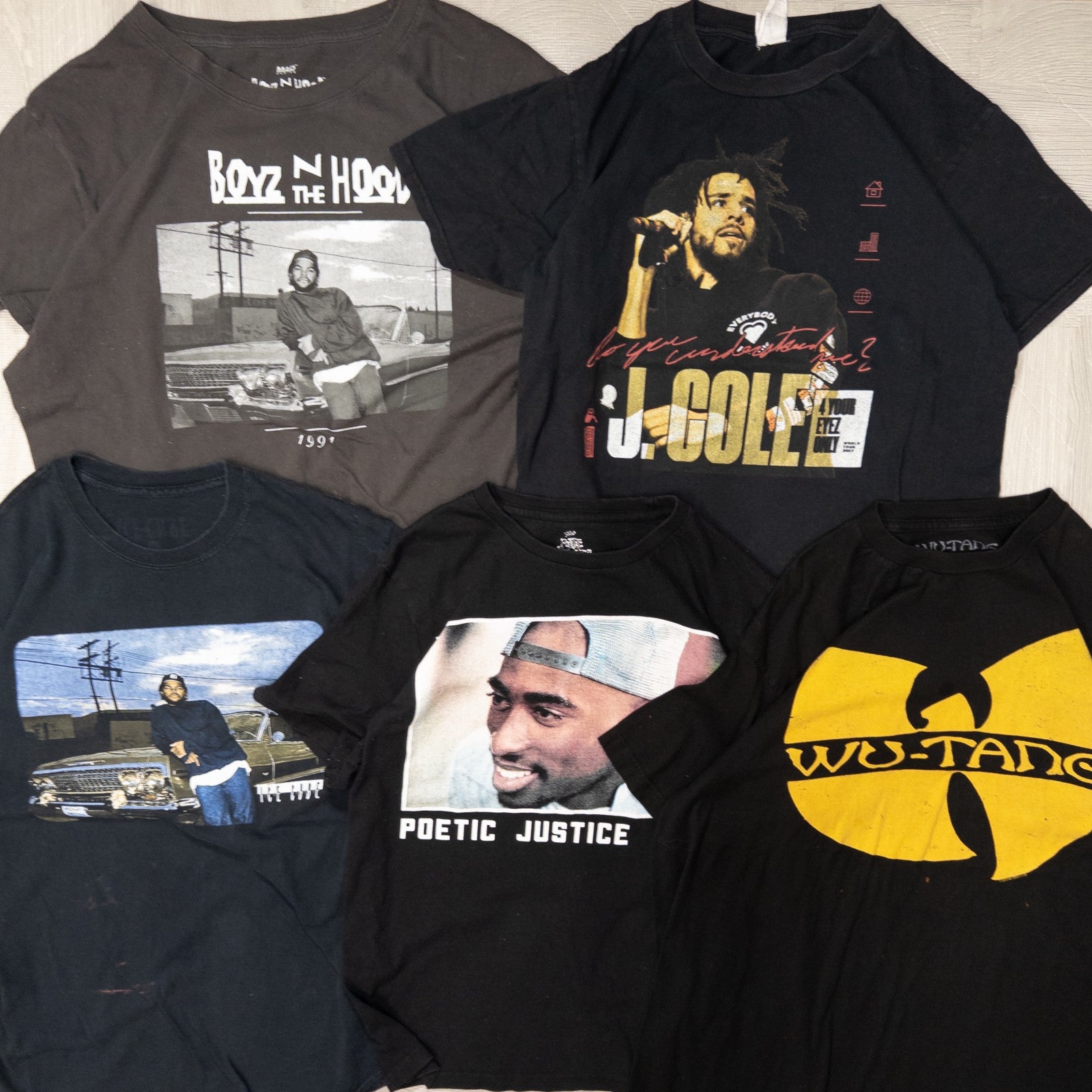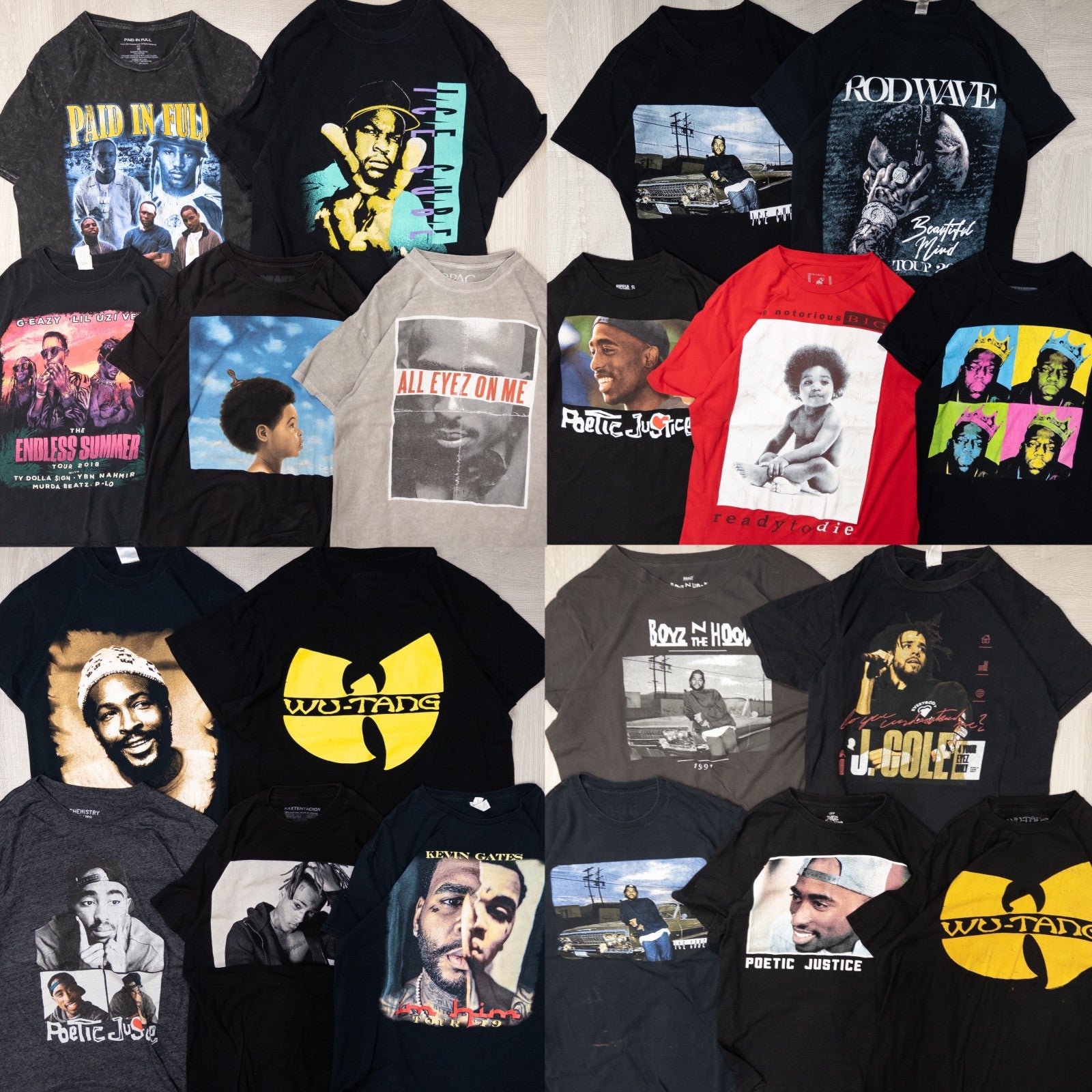 Used clothing wholesale, bulk sale, washed, HIP-HOP rap short-sleeved T-shirts, set of 20 (XS-XXL) w701006