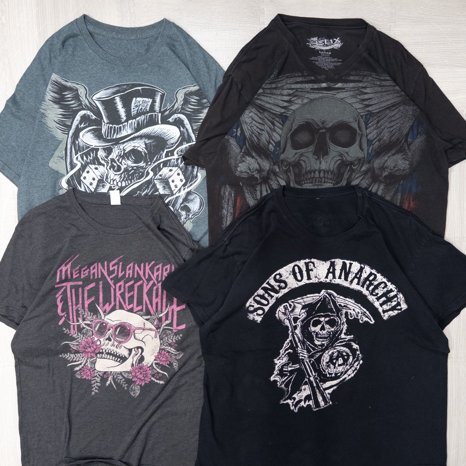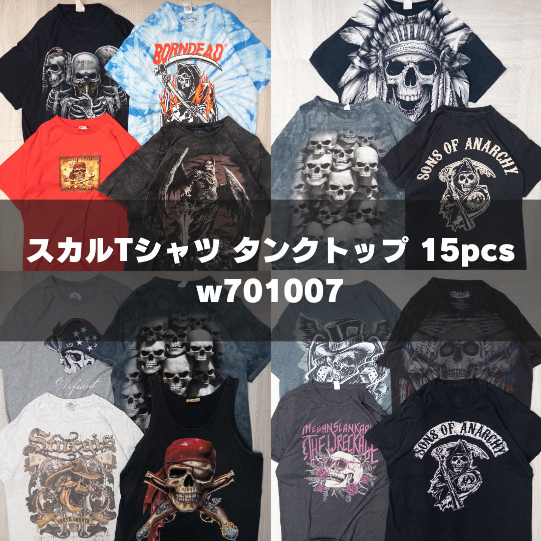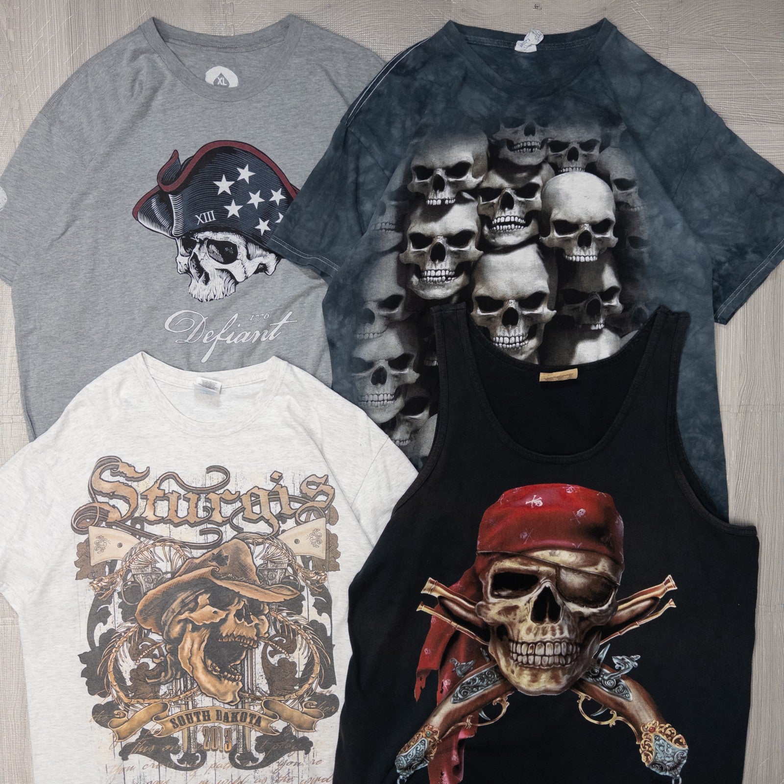 Wholesale Used Clothing, Bulk Sale, Washed, Skull Short Sleeve T-Shirts, 1 Tank Top, Total of 15 (M-XXXL) w701007