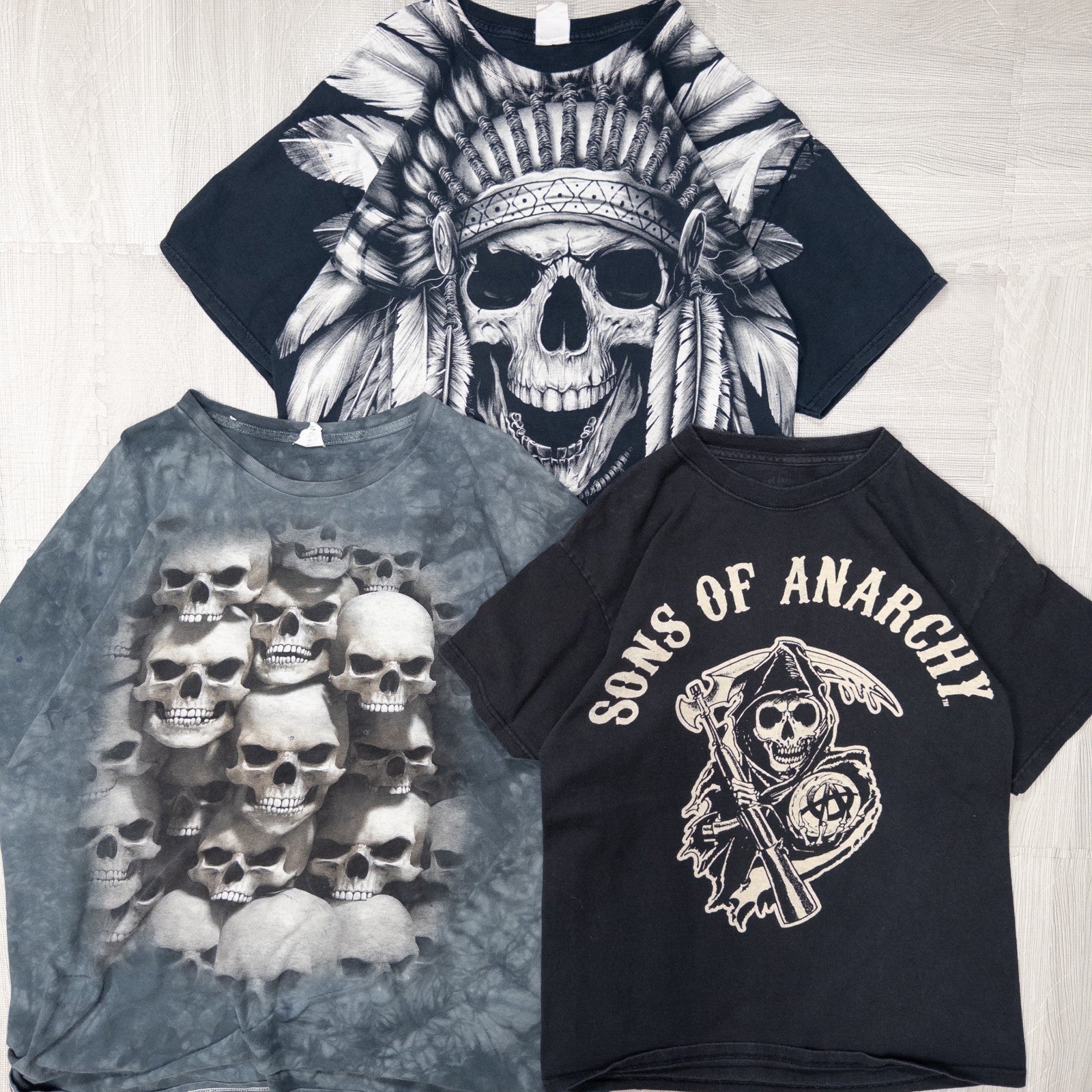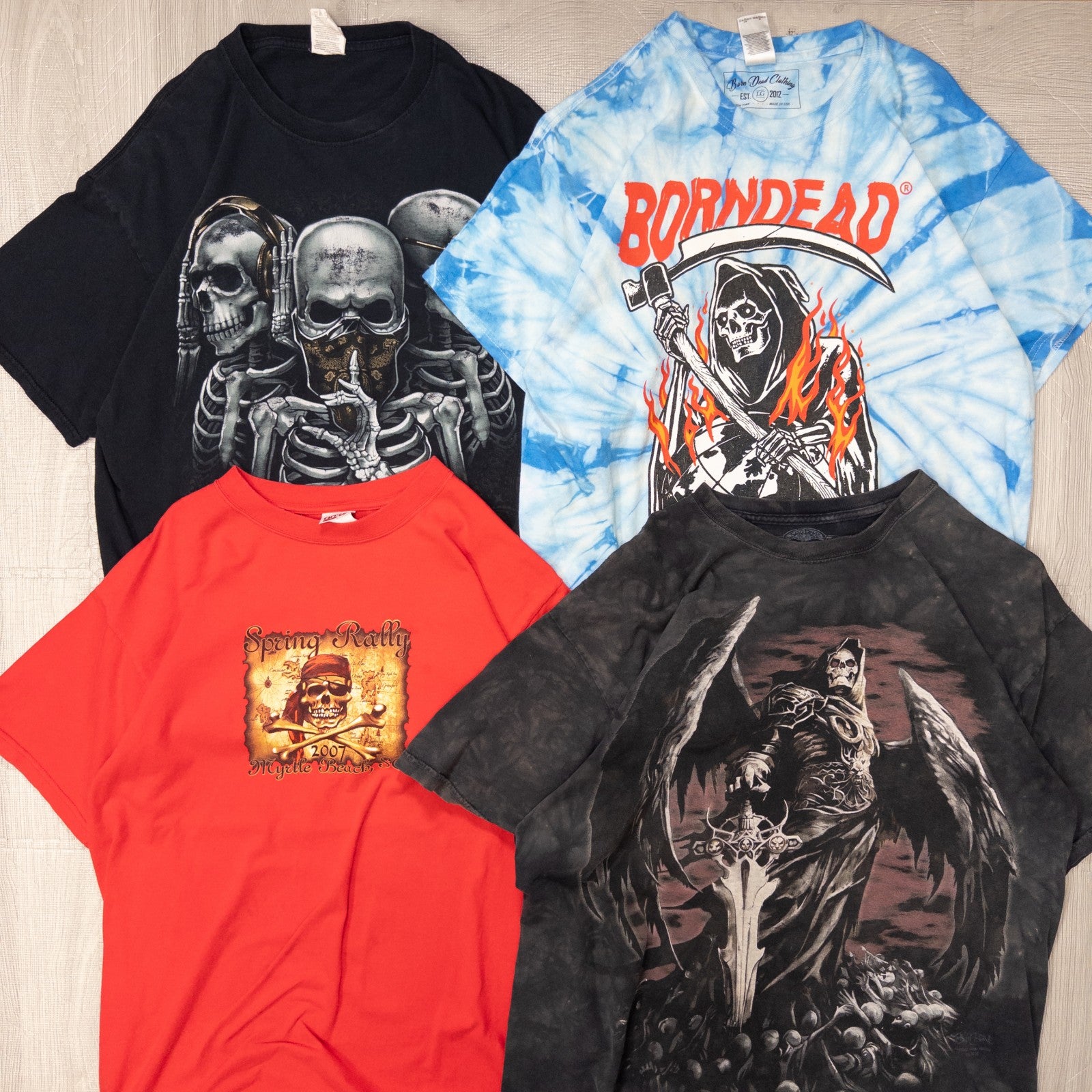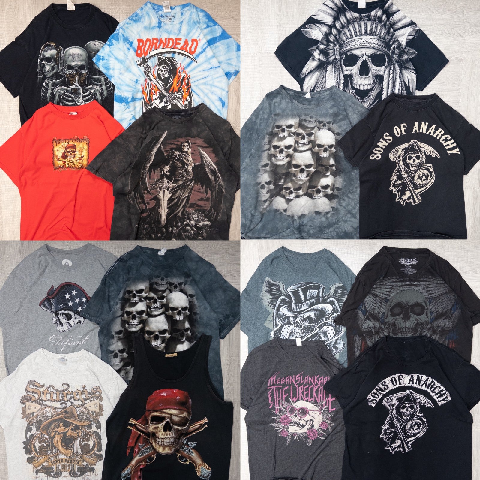 Wholesale Used Clothing, Bulk Sale, Washed, Skull Short Sleeve T-Shirts, 1 Tank Top, Total of 15 (M-XXXL) w701007