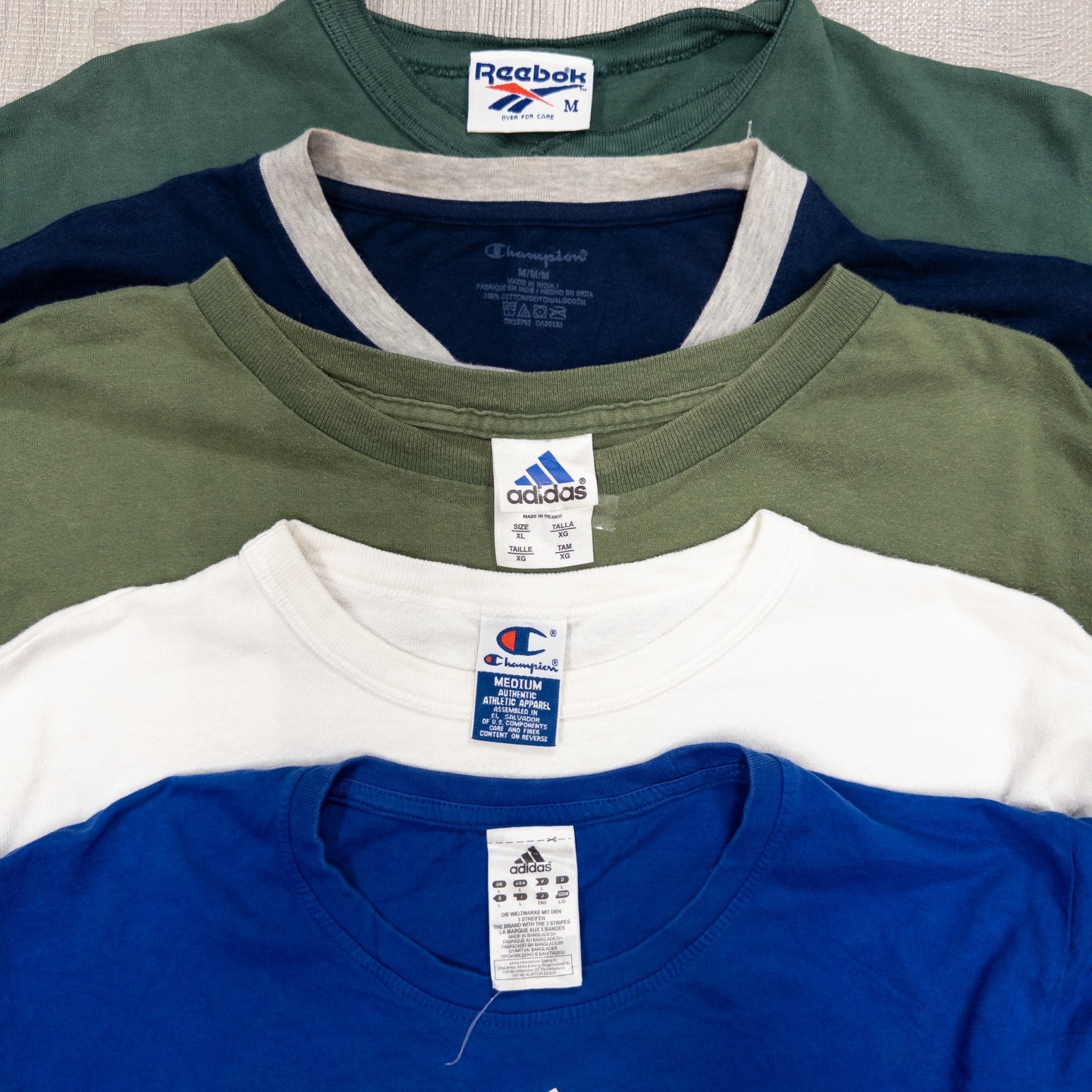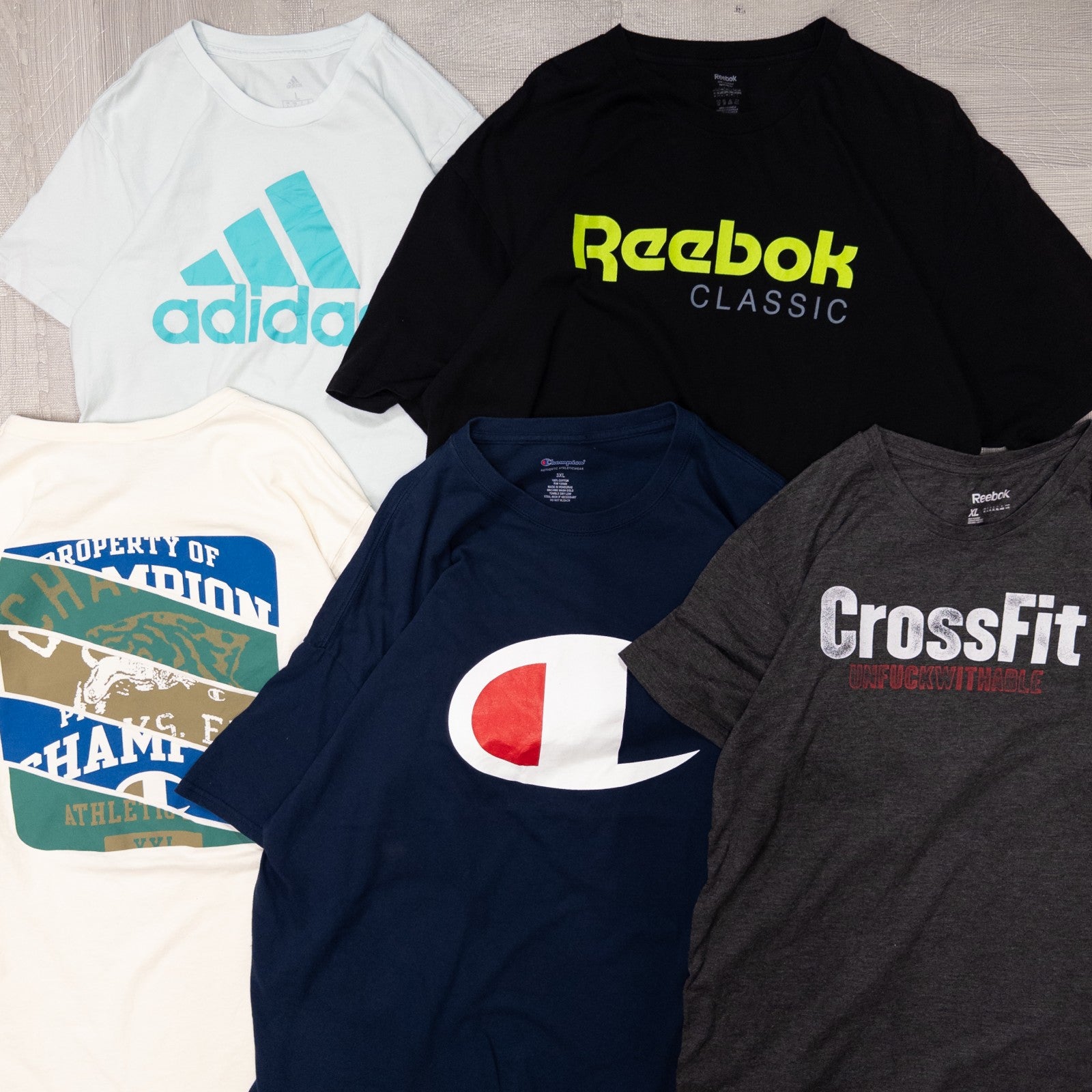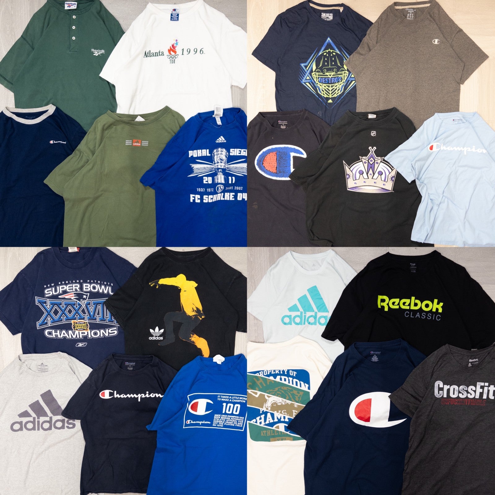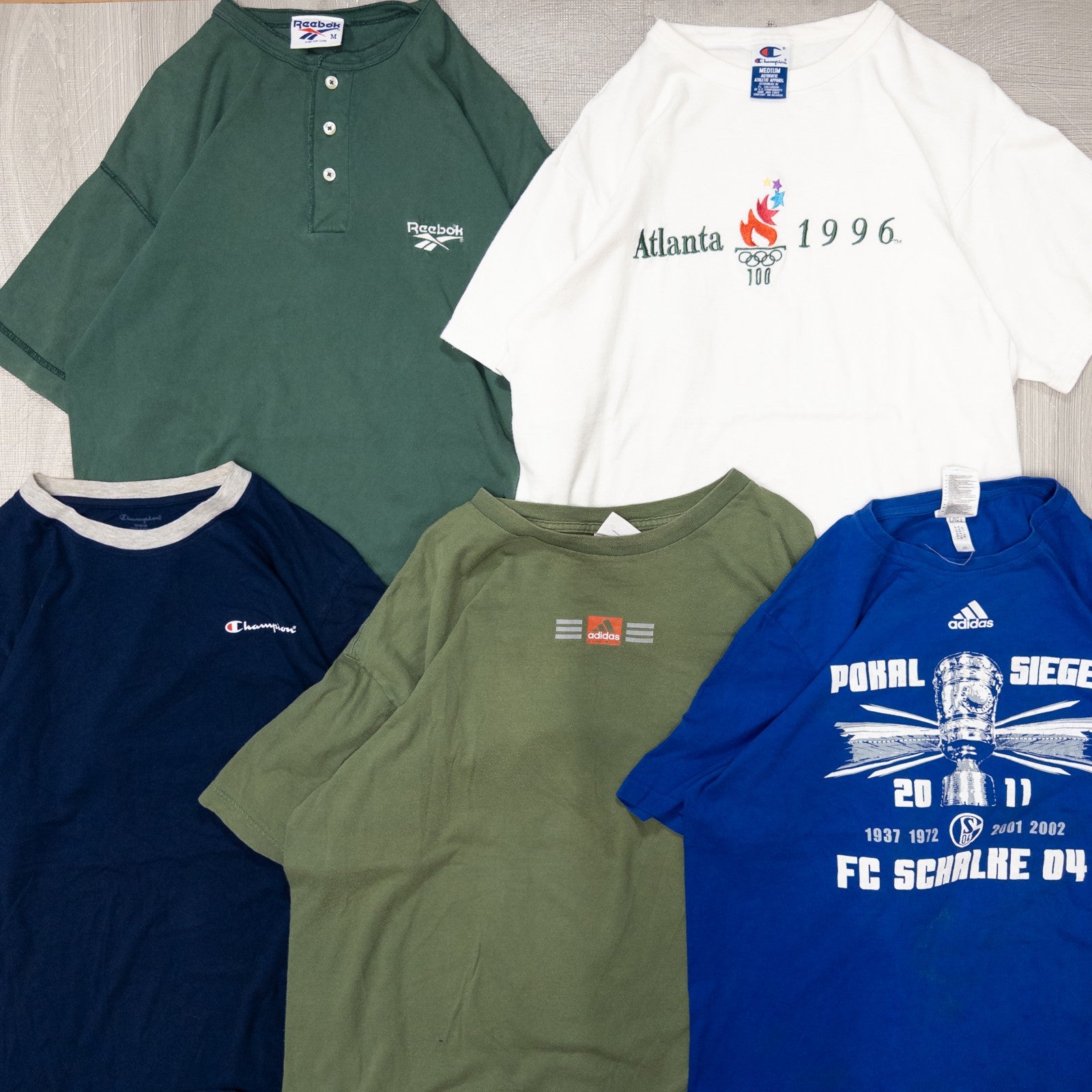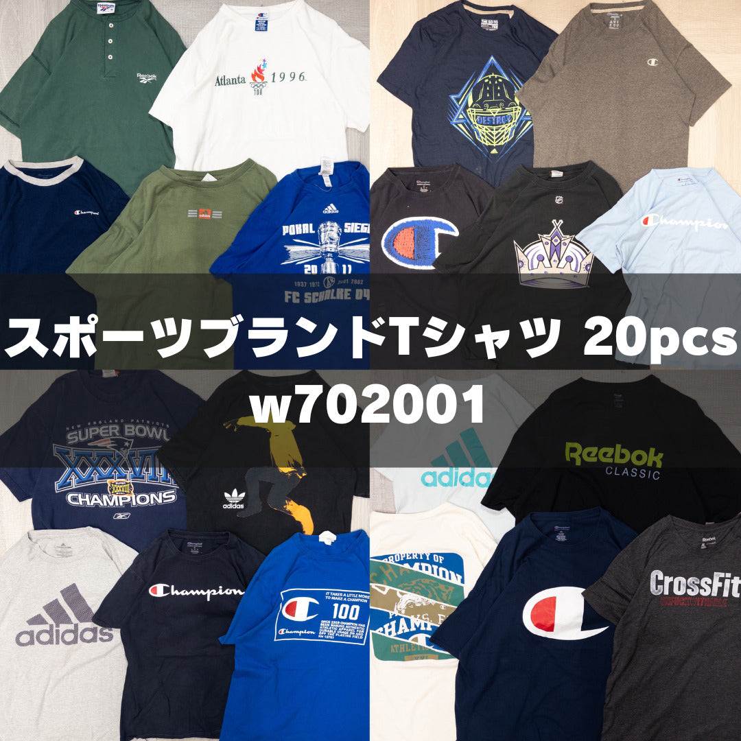 Used clothing wholesale bulk sale. Washed sports brand mix short-sleeve T-shirts, Adidas, Champion, etc., 20-count (S-XXXL) w702001