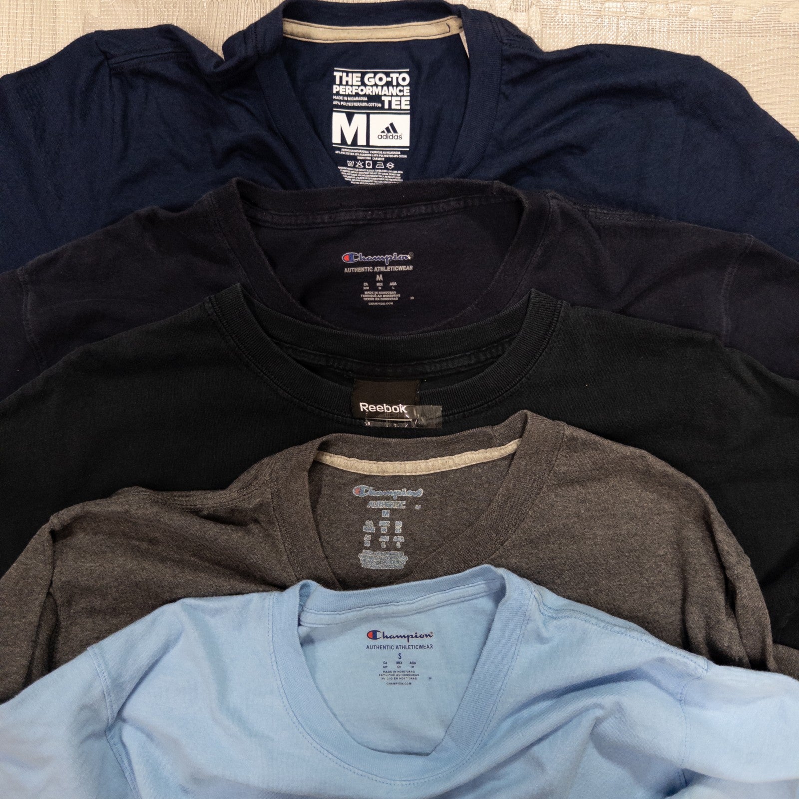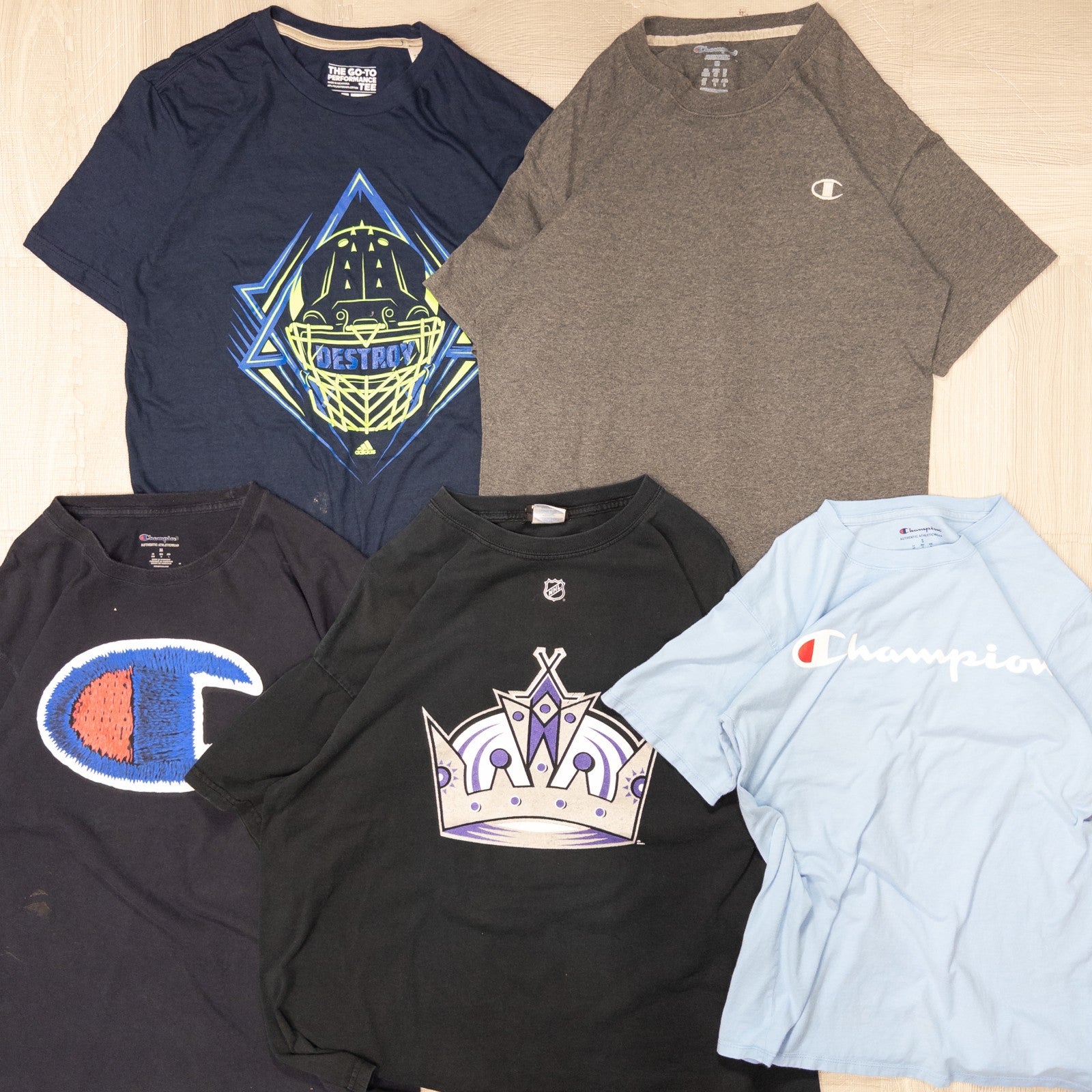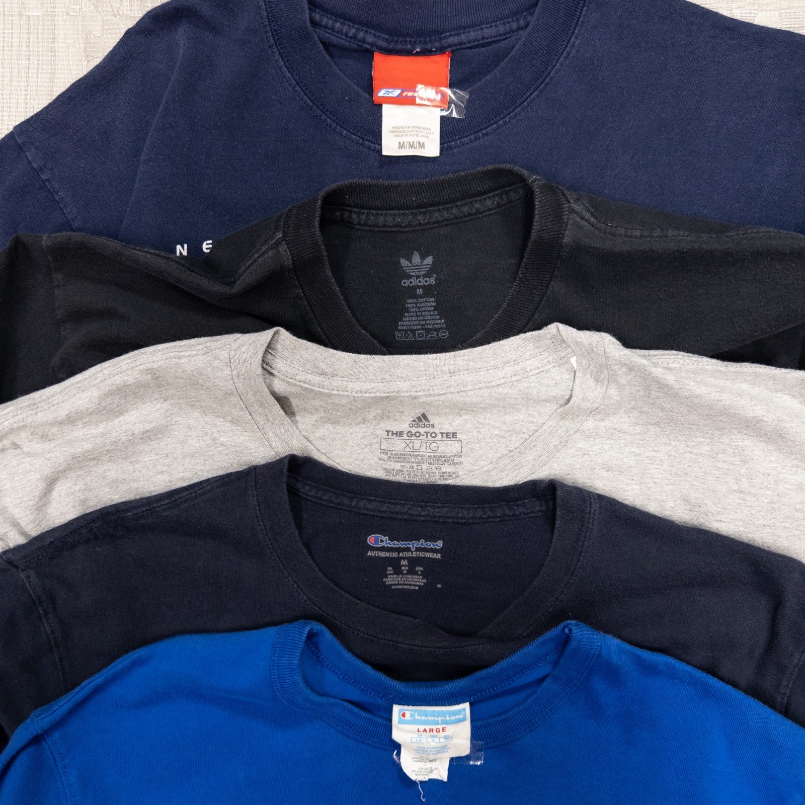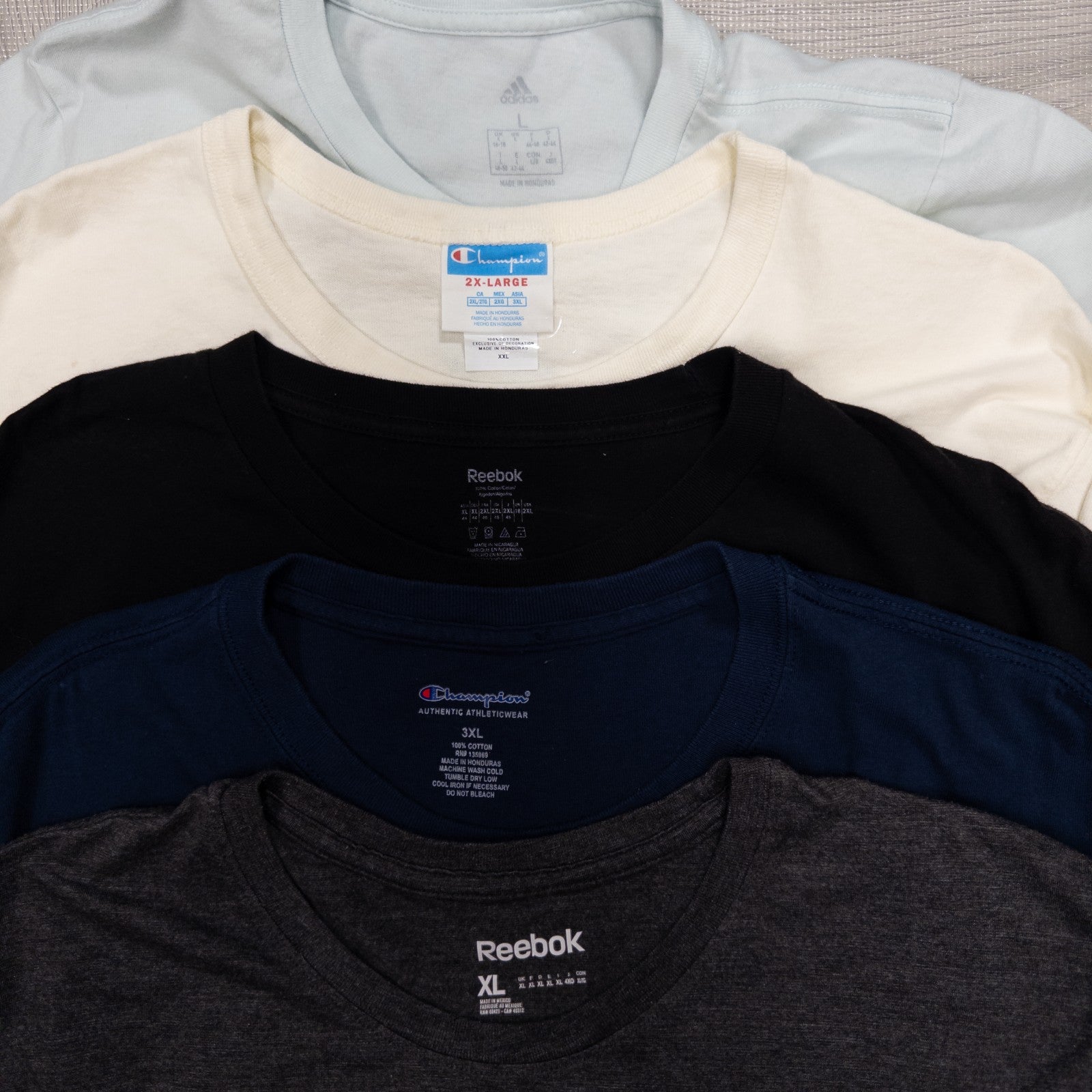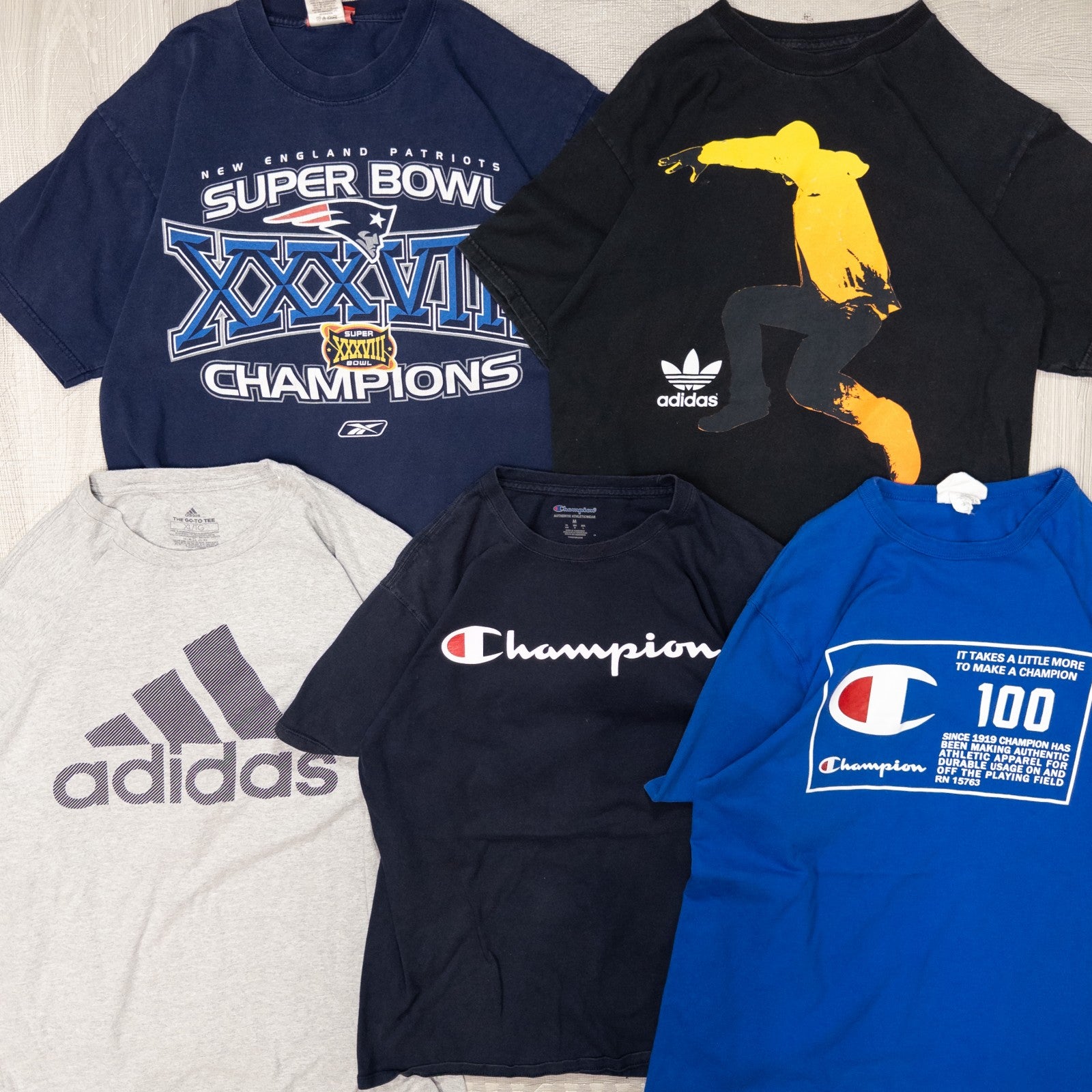 Used clothing wholesale bulk sale. Washed sports brand mix short-sleeve T-shirts, Adidas, Champion, etc., 20-count (S-XXXL) w702001
