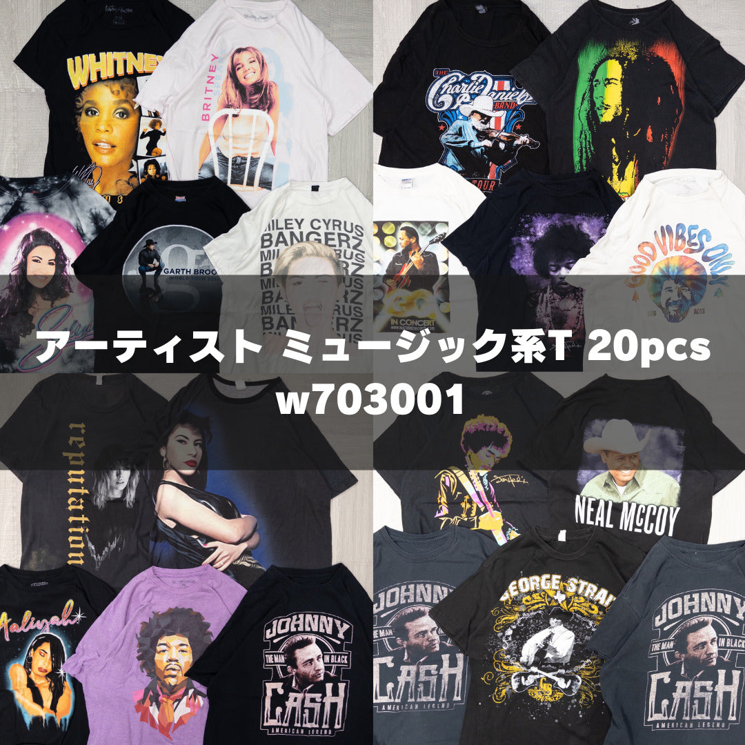 Used clothing wholesale, bulk sale, washed, artist music short-sleeved T-shirts, set of 20 (M-XXXL), w703001