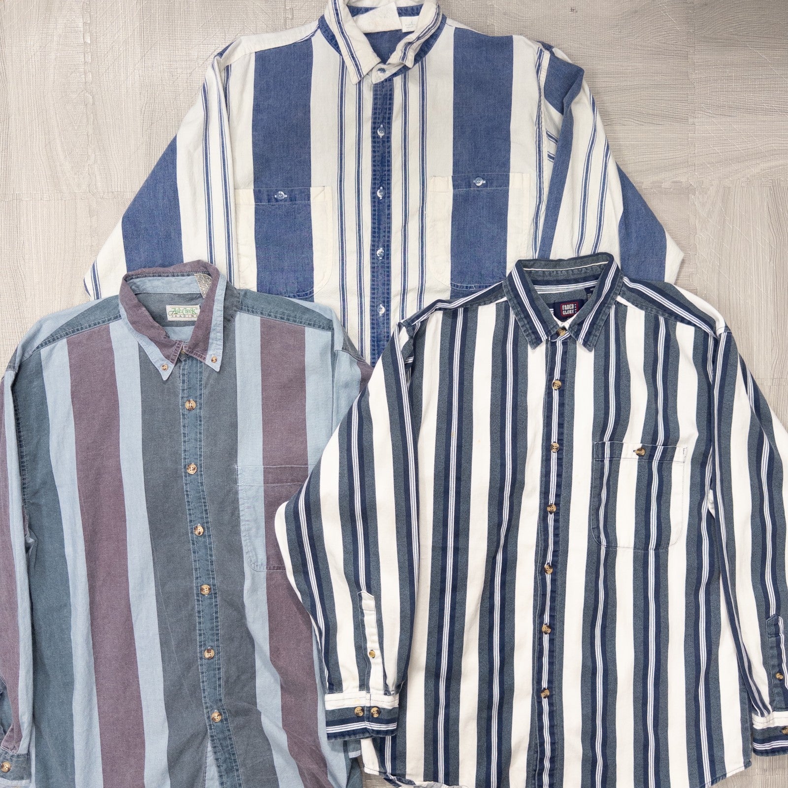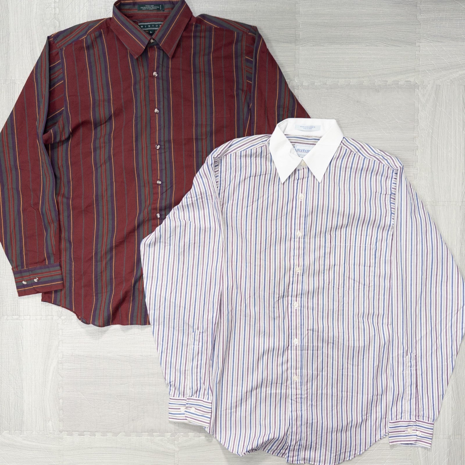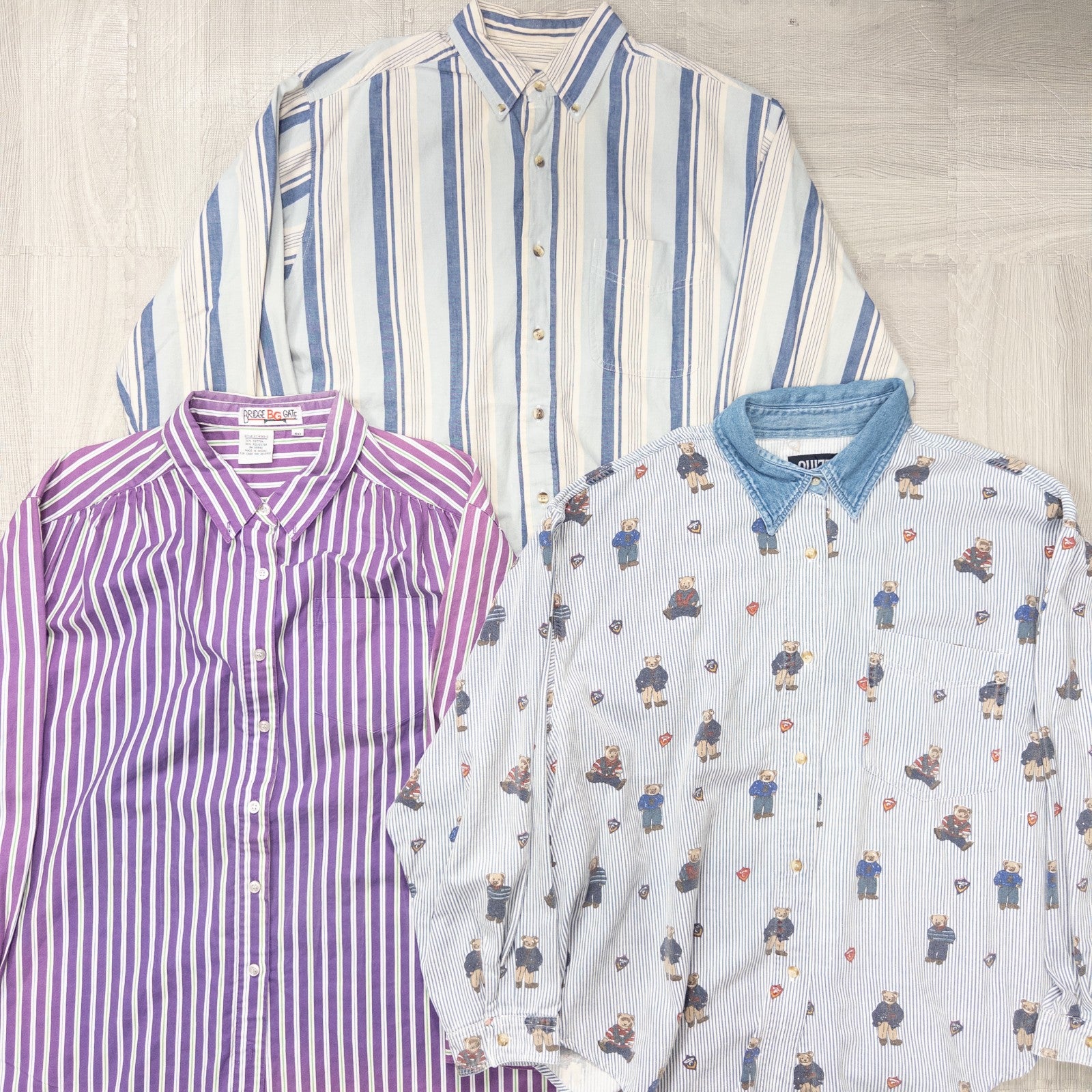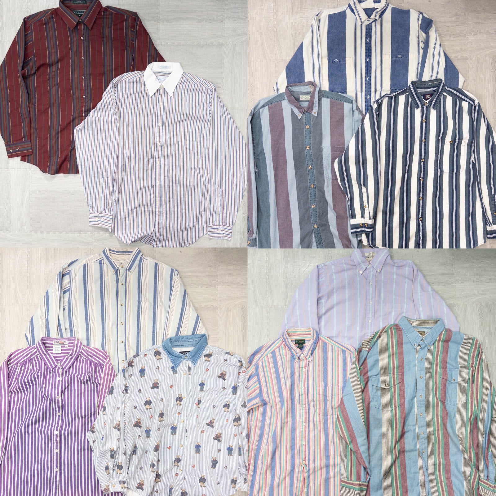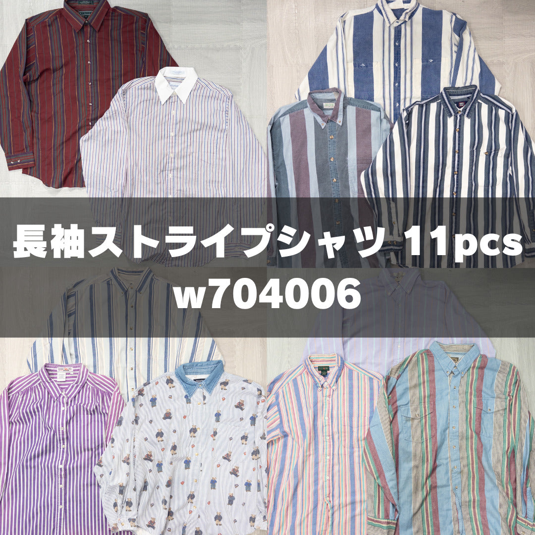 Used clothing wholesale bulk sale: Washed long-sleeved striped shirts, set of 11 (M-XXXL) w704006