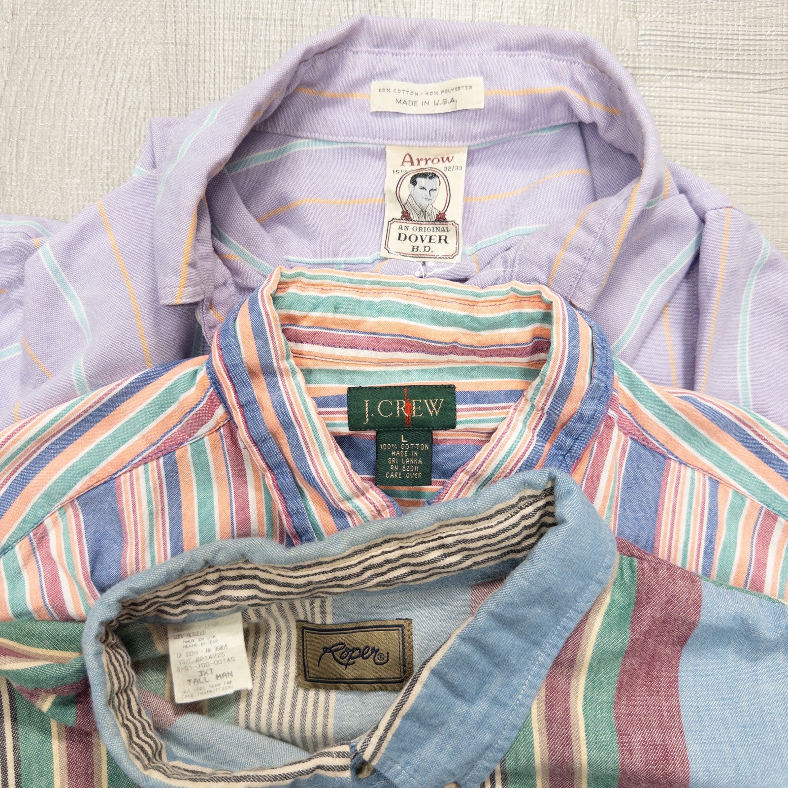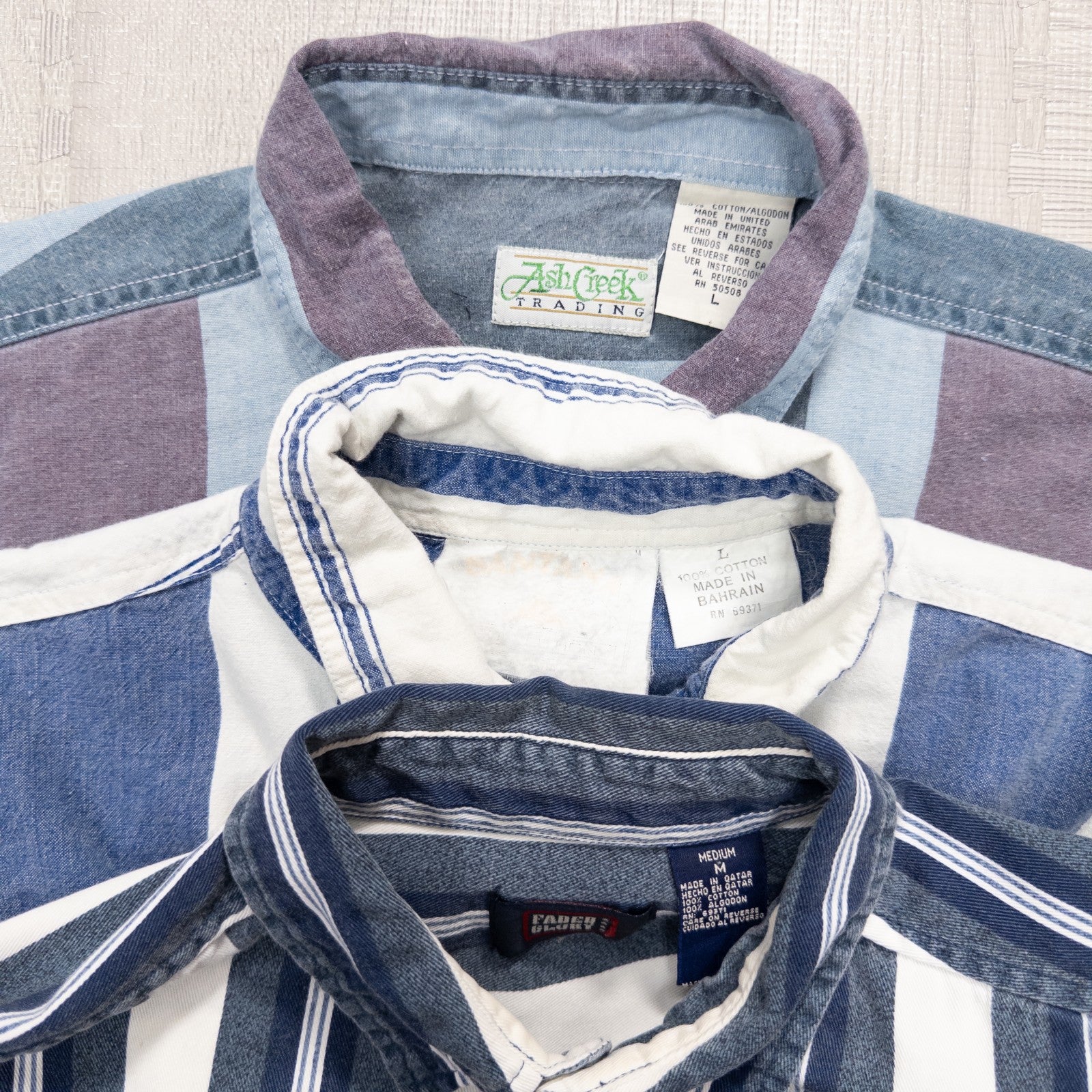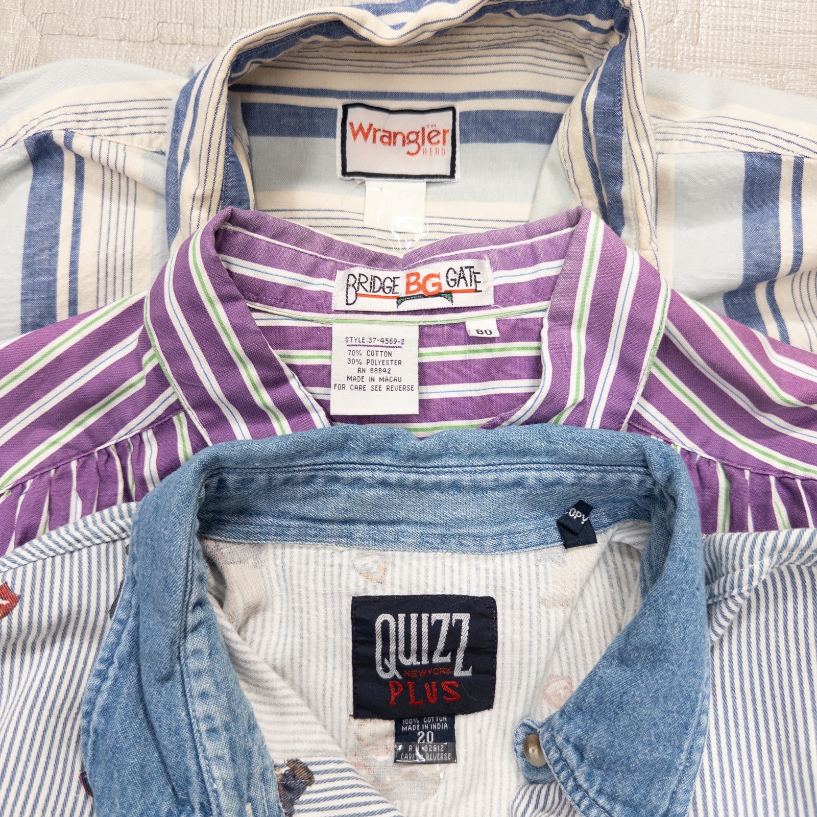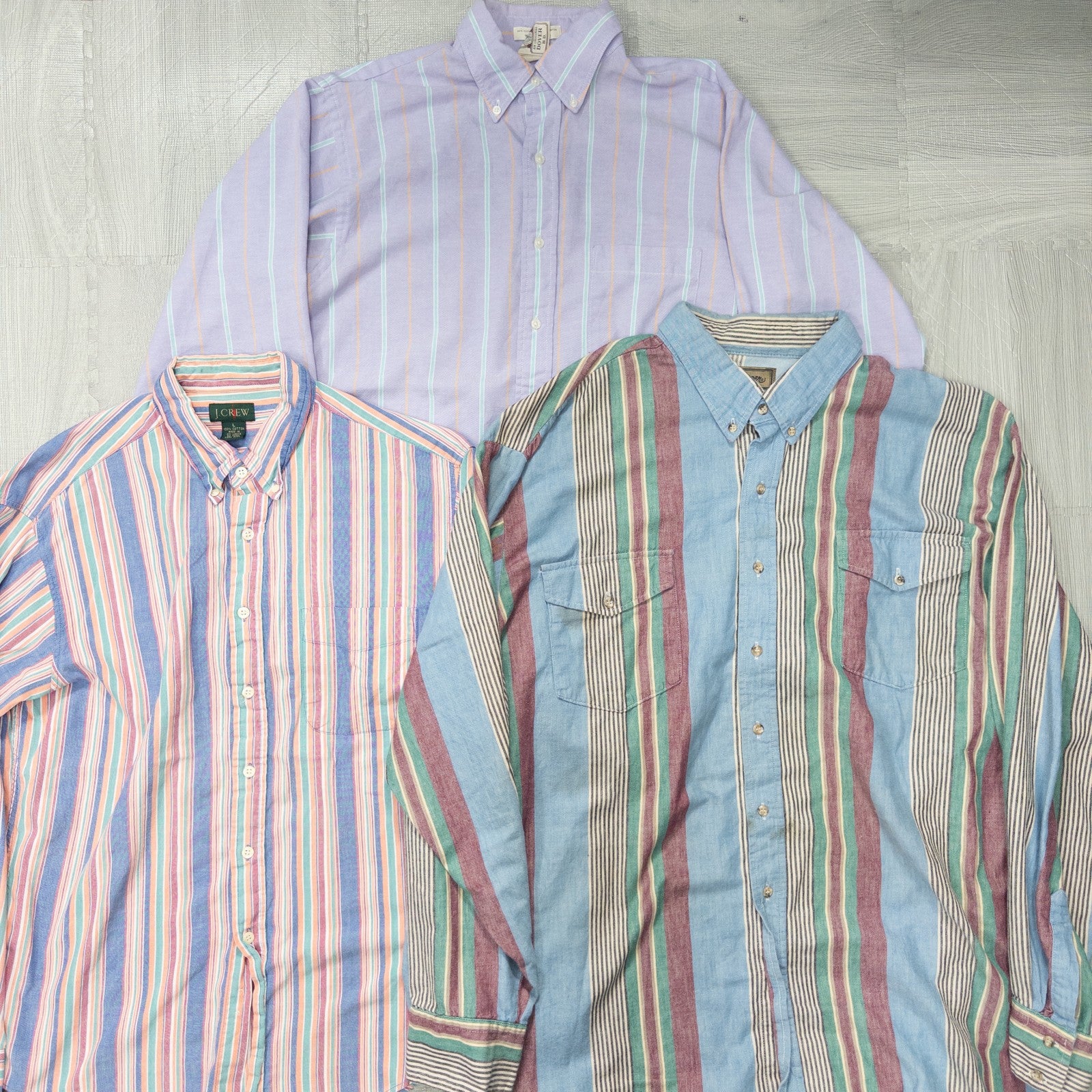 Used clothing wholesale bulk sale: Washed long-sleeved striped shirts, set of 11 (M-XXXL) w704006