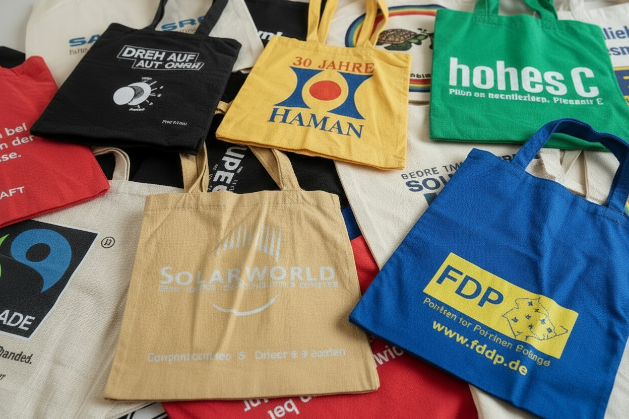 内容は、企業・団体・イベントなどで使われていたレトロデザインのコットンバッグ。
