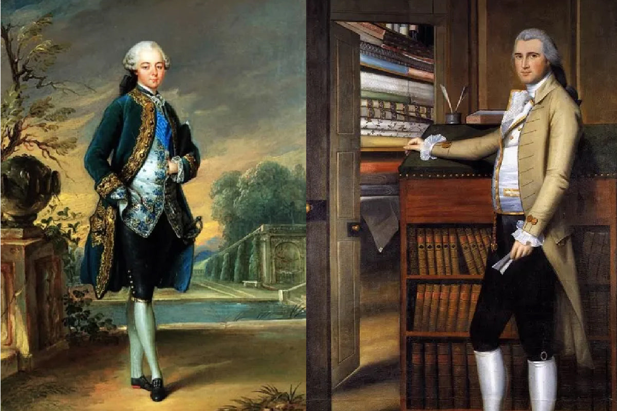 貴族たちはシルクのシャツに金糸の刺繍を施し、膝丈のキュロットをはいていた。