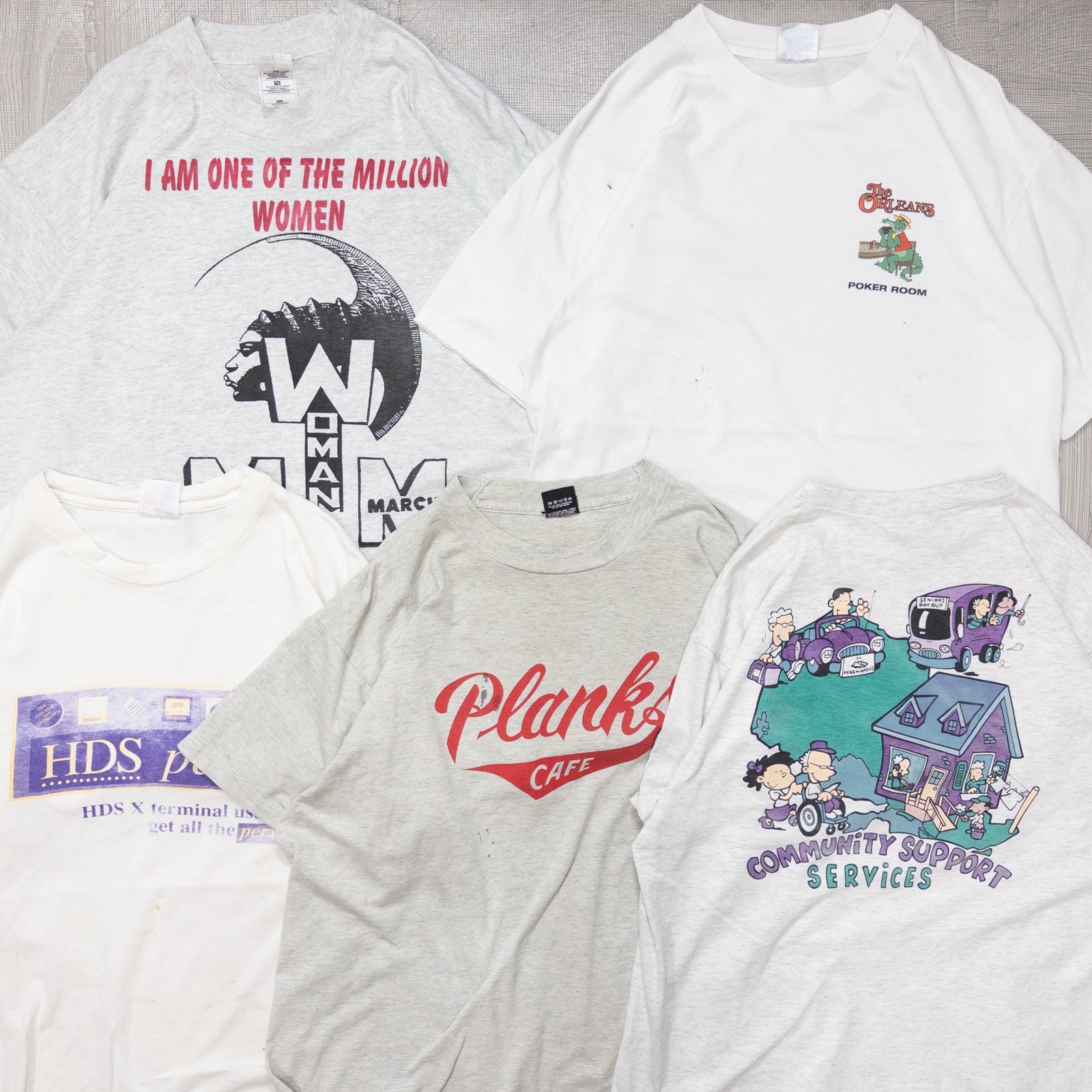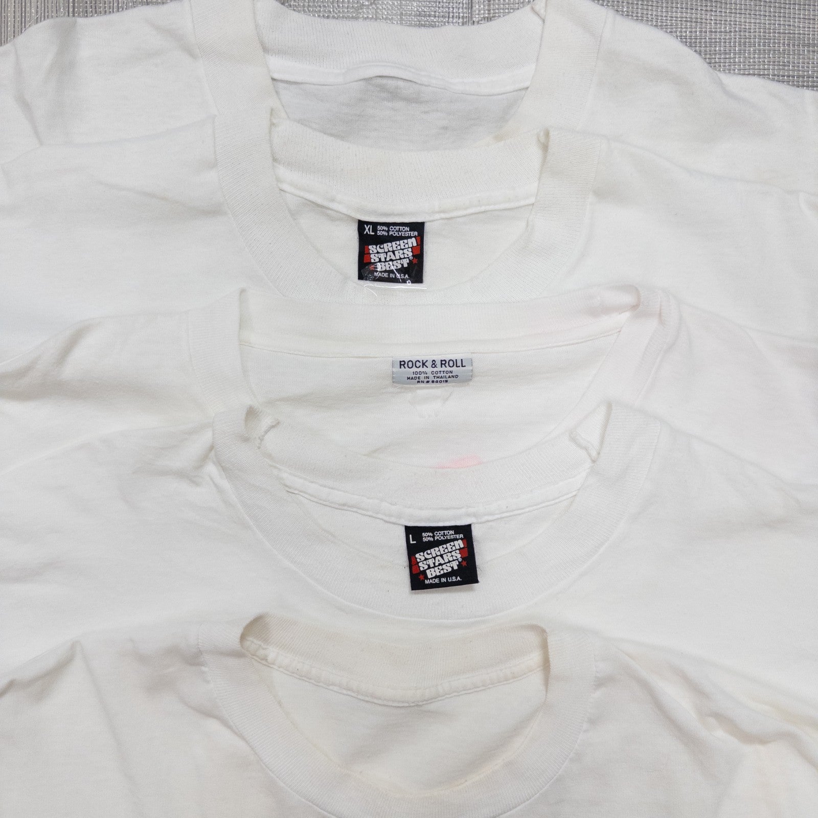 90年代のシミありTシャツのまとめ売りです。 まとめての卸売りの為、細かいダメージの記載は出来かねますが、 着用ができないほどの過度なダメージのものは検品後に弾いています。 写真の商品をそのままお届けしますのでおおよその状態は写真からご確認ください 洗濯済みですが強い皮脂汚れや油汚れ、泥汚れ等は落ちきっていない場合がございます。 汚れによっては漬け置きや手洗いで落ちる場合があります。 |