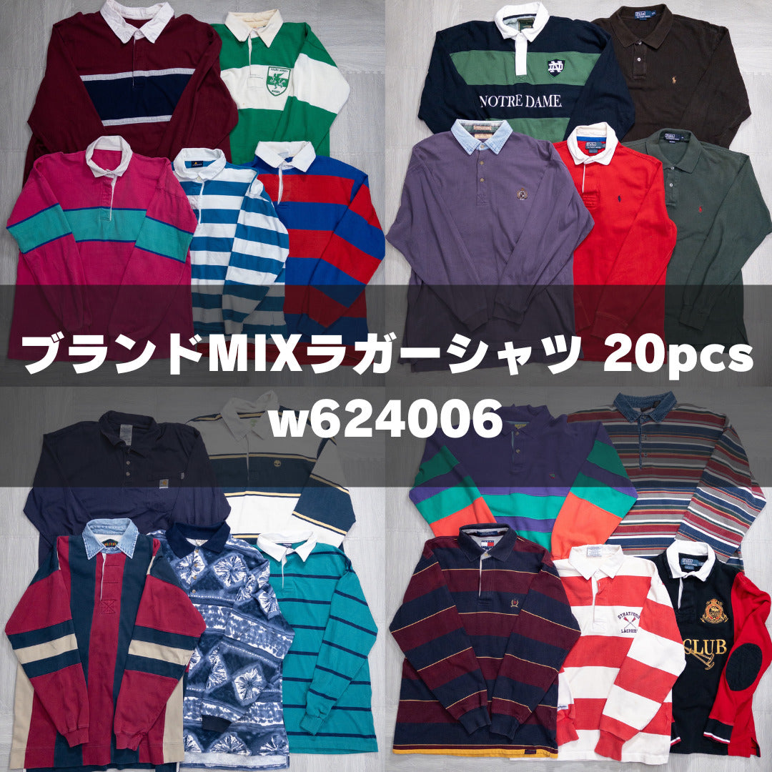 古着卸 現物まとめ売り 洗濯済み ブランドMIX 長袖ポロシャツ ラガーシャツ 20枚セット(S-XXL) w624006